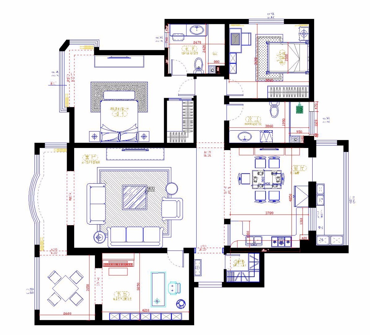 小区:南极国际 面积:140㎡ 户型:三居 风格:美式风格