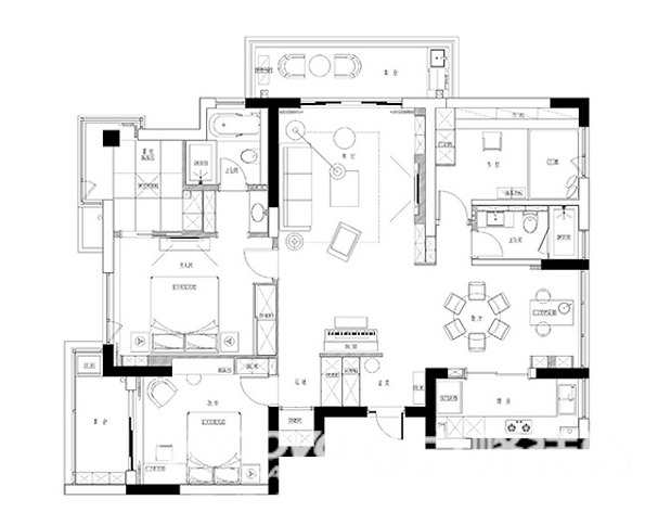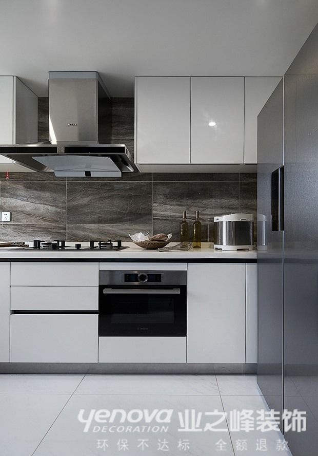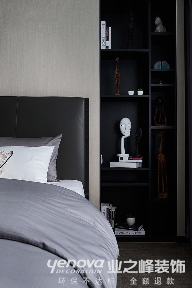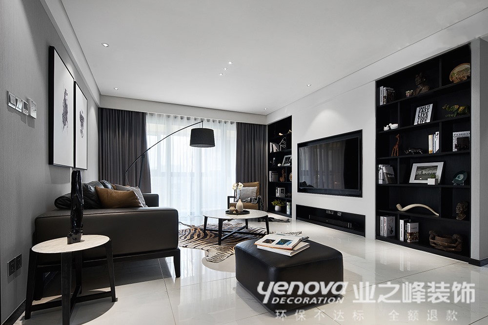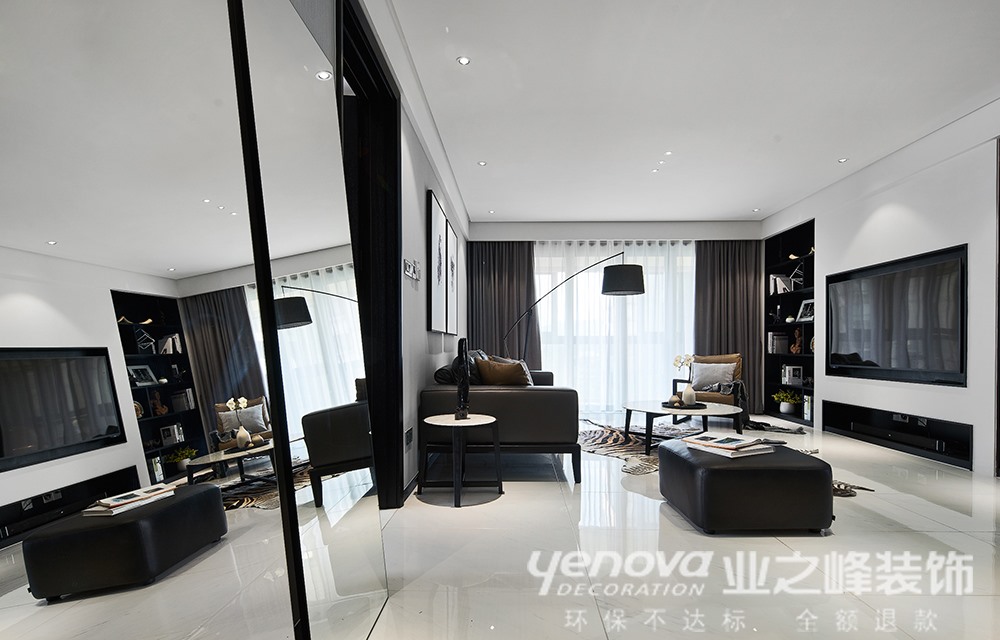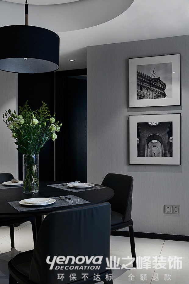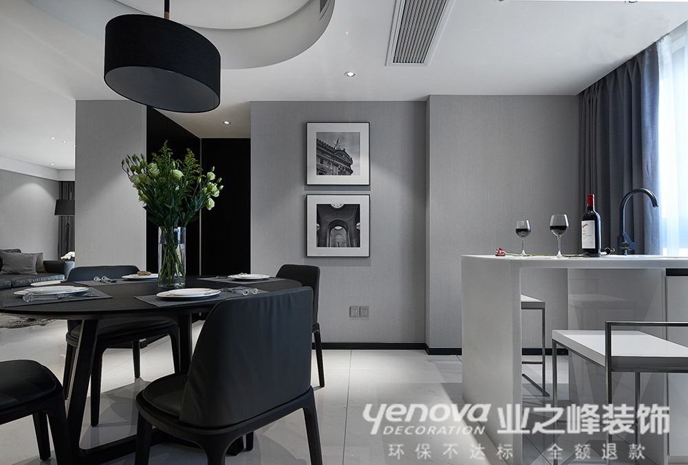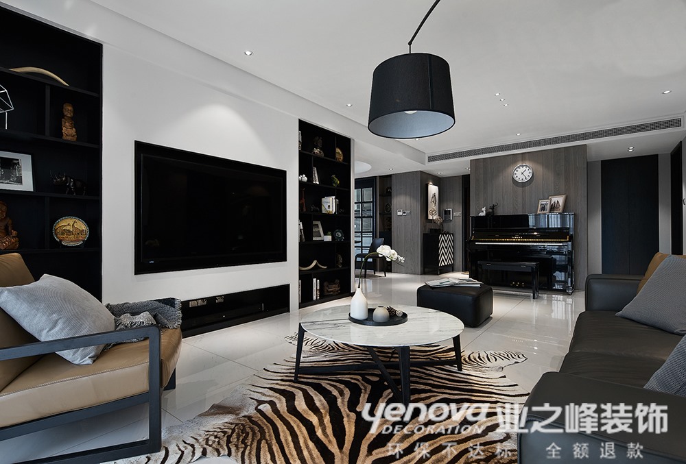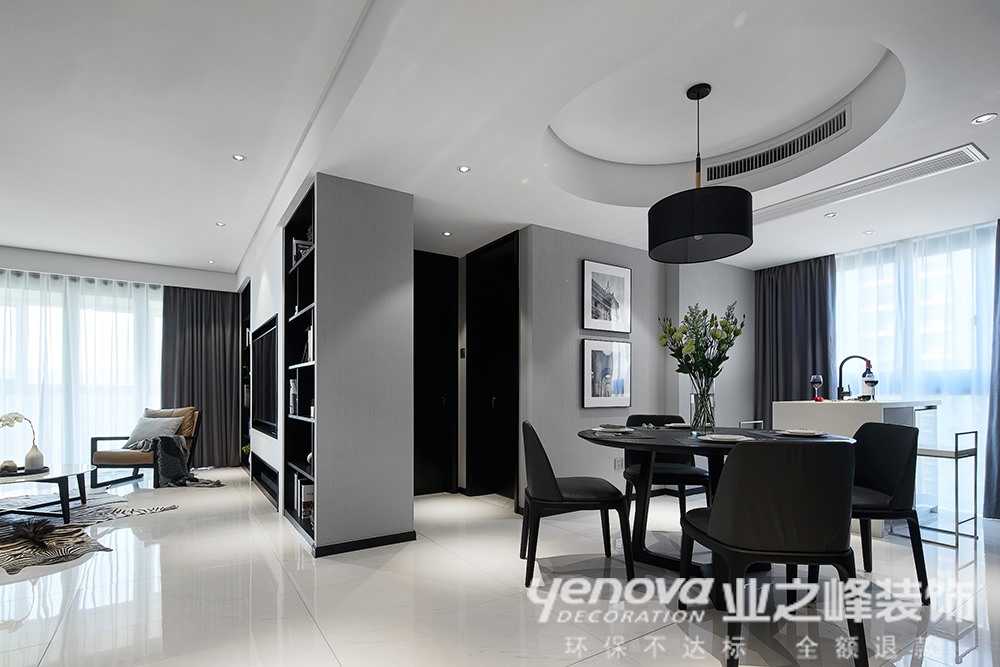 本案作品将极简的现代风加入了摩登前卫的黑白灰色调,无疑给整个空间注入艺术气息,设计师在材料的选择和细节色彩的配比上更加注重各元素之间细腻微妙的变化和对比,如明暗深浅、亦刚亦柔,如同一位艺术家在多面体的空间内创作一幅抽象画,同时在家具配置上,光泽的灰色皮质的家具倍感时尚,将舒适与美观并存的享受,同时灰色又是黑白质检的过渡色,和偕自然,把黑与白强烈反差缓冲并融合,营造出平静心境的家居氛围。
