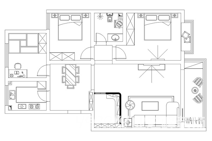 小区:晋机东风 面积:130㎡ 户型:三居 风格:简欧风格