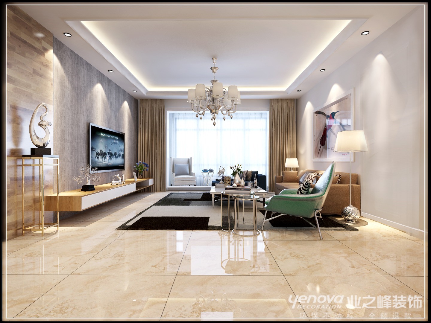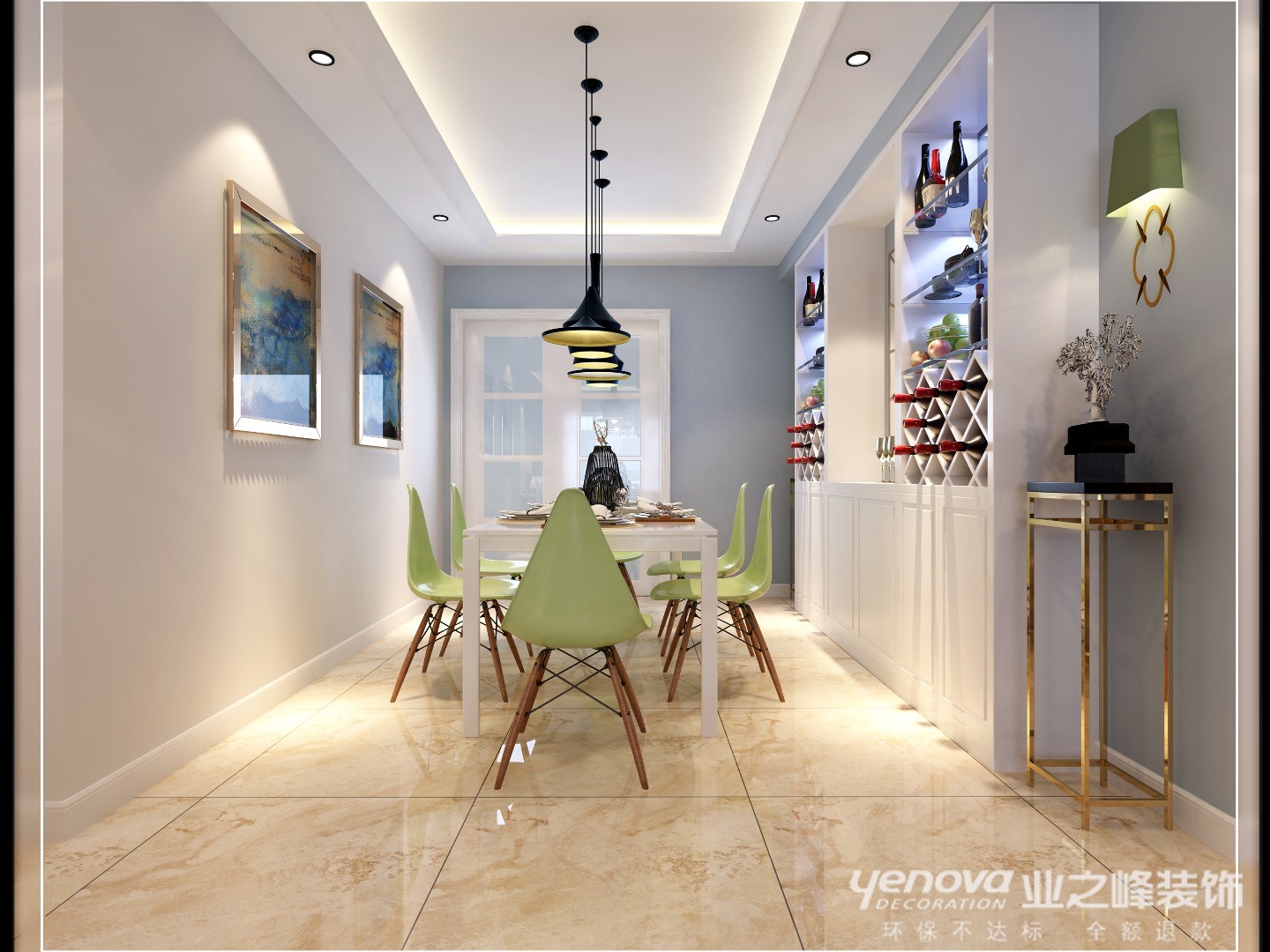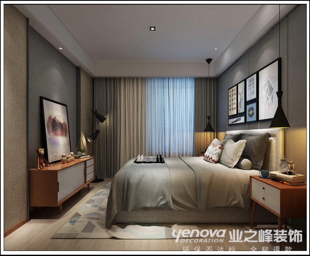 家,不接纳太多喧闹,也不欢迎过分拥挤。安静淡然、清新素雅、不骄不躁、浓淡皆宜,盛一室清宁,方可享一世清欢。这样的家会让人不由自主的放松,让人忍不住沉醉其中,尽情享受生活。在本案中,客厅电视背景墙墙面使用壁纸和木地板上墙,并未使用繁杂的造型,简单不等于无,整体空间氛围明快;餐厅大面积使用乳胶漆,用装饰画进行墙面的装饰使之与客厅进行统一;卧室以素色壁纸作为饰面,在床头背景挂以装饰画进行饰面,简洁但不失格调美感。