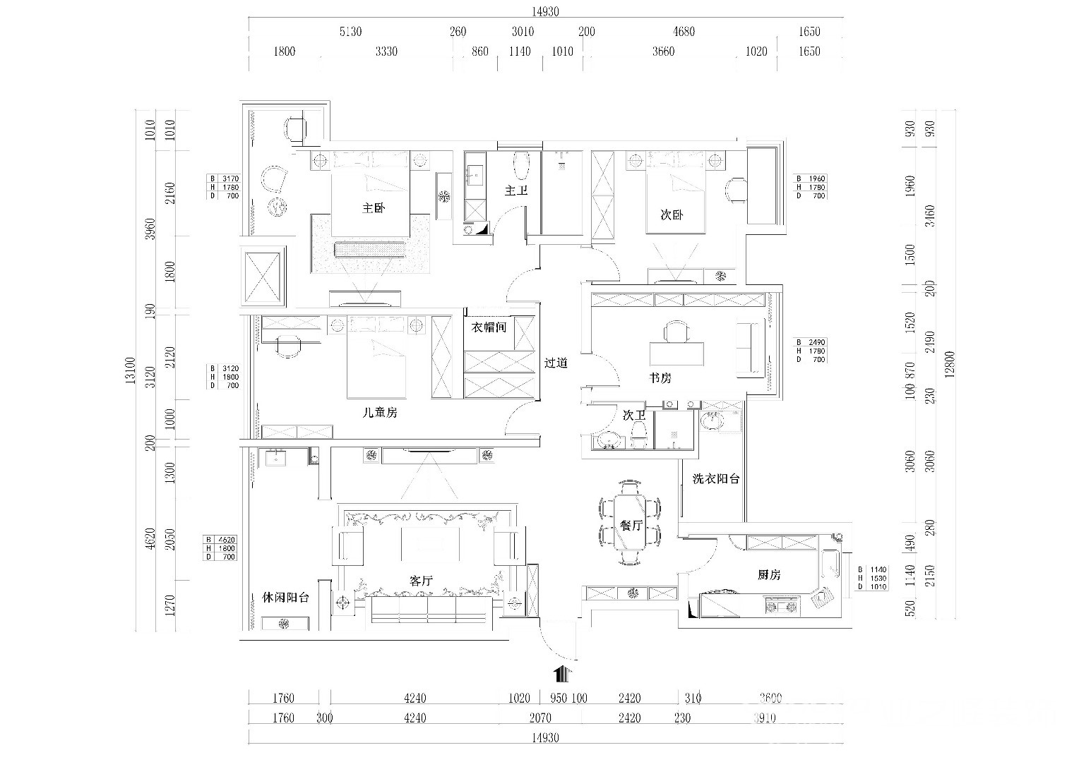 小区:海泊紫庭 面积:172㎡ 户型:四居 风格:现代简约风格