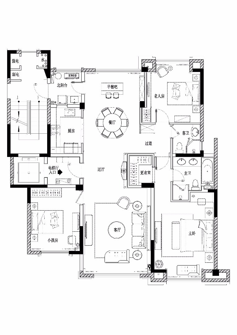 小区:阳光小区 面积:168㎡ 户型:三居 风格:美式风格