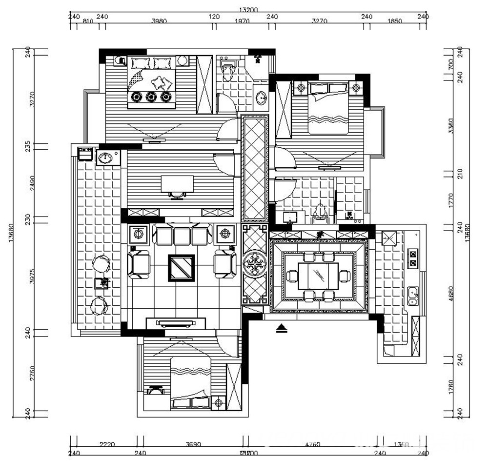 小区:梧桐庄园 面积:130㎡ 户型:四居 风格:新中式风格