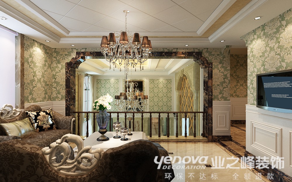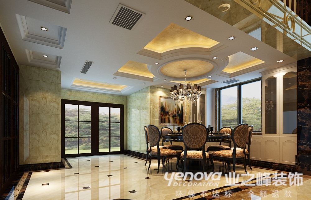 设计改变生活、充分利用每处可用空间的同时兼顾整体美感是本案设计的主题、客厅上方的天桥让整个客厅失去了整体的大气的中空别墅所富有的气势、将一楼与二楼的公共空间融为一体使客厅整体美观的设计与二楼共享是设计的中心、狭小的餐厅扣去整体的50分、让整个客厅设计缺少互动感、将狭小的储物间融入餐厅势在必行、巧妙的楼梯设计让每个空间得到各自的缓冲、使空间更为灵动、整个客餐厅采用了大理石设计让欧式风格演绎的更加辉煌庄严。