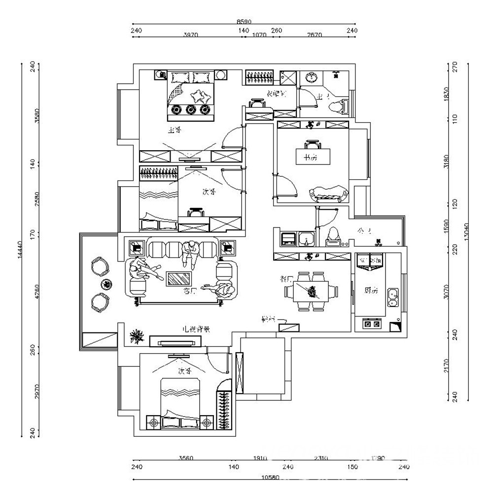 小区:万达文化旅游城 面积:130㎡ 户型:三居 风格: