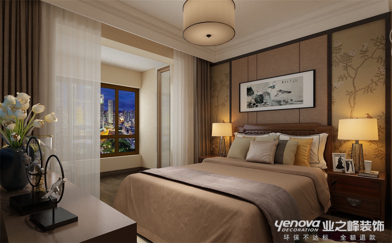 家具结合中式的装饰元素,来呈现墙面顶面空间感。顶面和墙面的结合是的空间更得以延伸。本案体现出有化感、空间感,还不能缺乏自在感与情调感。所使用的材料流露出一股浓浓的中式风情。