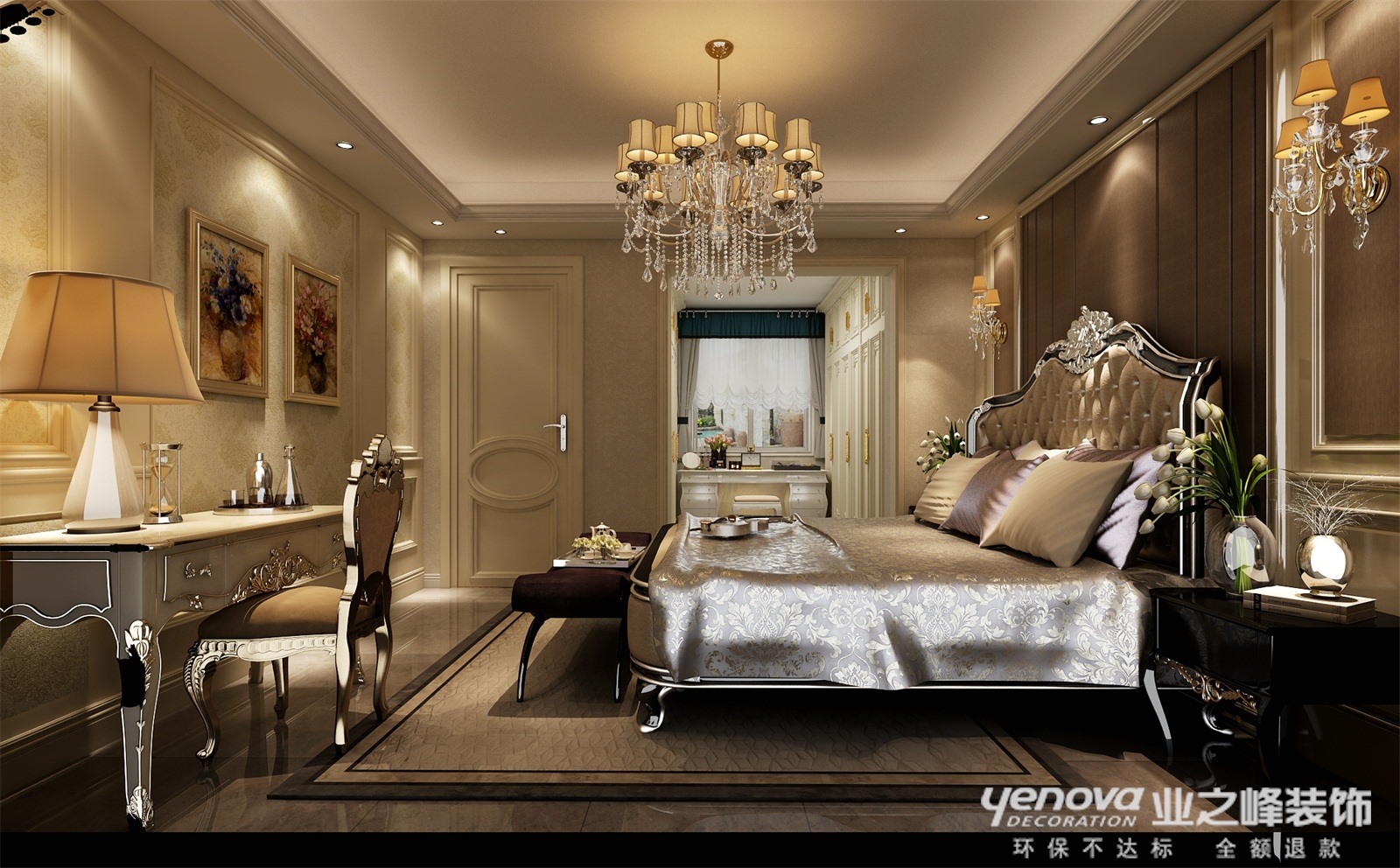 和家具,结合新古典的的装饰元素,来呈现墙面顶面有层次的空间氛围。顶面和墙面的结合是的空间更得以延伸。本案体现出有化感、空间感,还不能缺乏自在感与情调感。所使用的材料流露出一股浓浓的古典风情。本案在设计上用心至极。