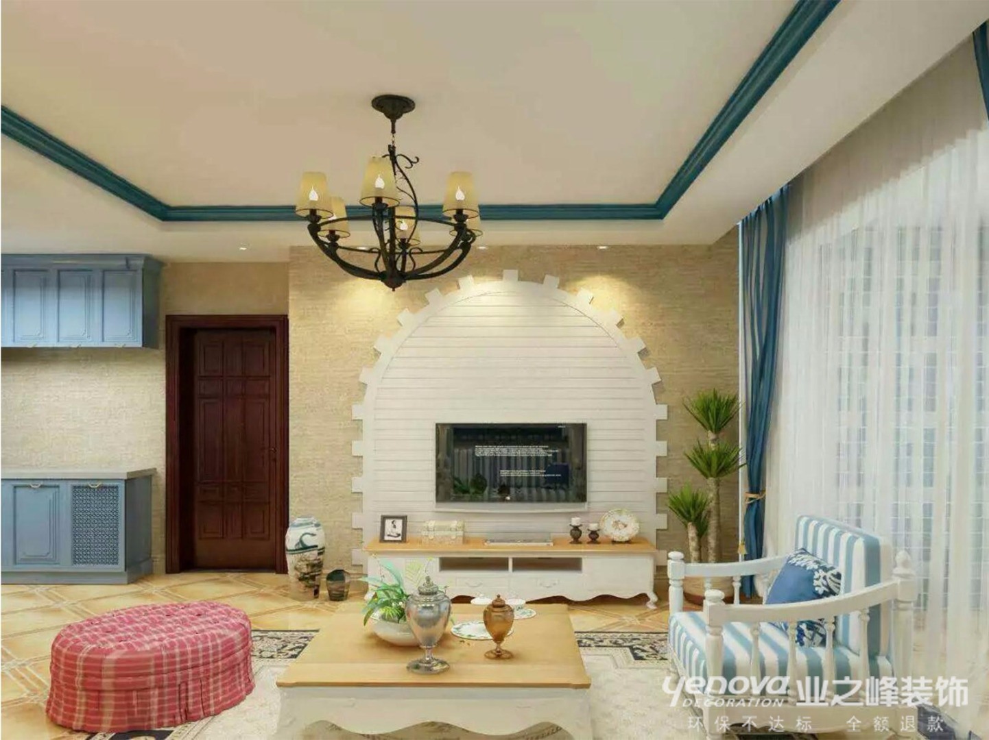 小区:东湖苑 面积:140㎡ 户型:三居 风格:地中海风格