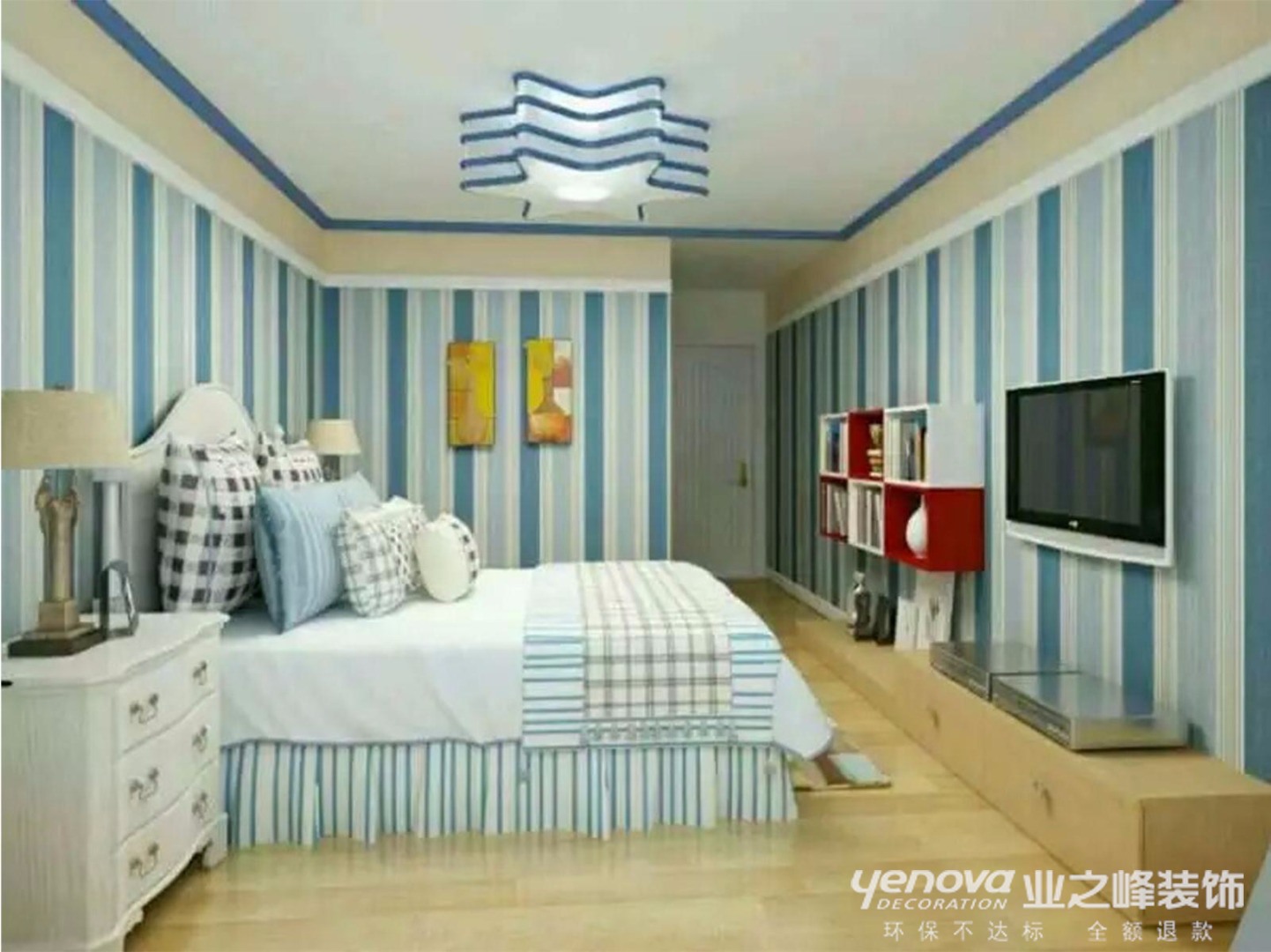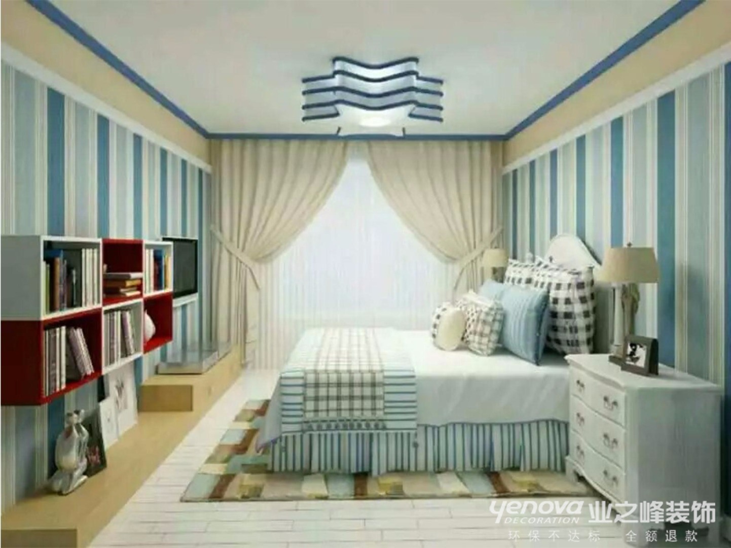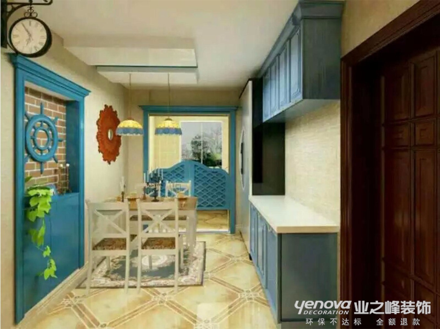 本案设计为地中海风格。地中海风格营造出其明亮、丰富、简单、民族性、有明显的特色。地中海风格的美,包括“海”与“天”明亮的色彩、仿佛被水冲刷过得白墙、薰衣草、玫瑰、茉莉的香气、路旁奔放的成片花田色彩、历史悠久的古建筑。同其他的风格流派一样,地中海风格有它独特的美学特点。在选色上,它一般选择直逼自然的柔和色彩,流露出古老的文明气息。