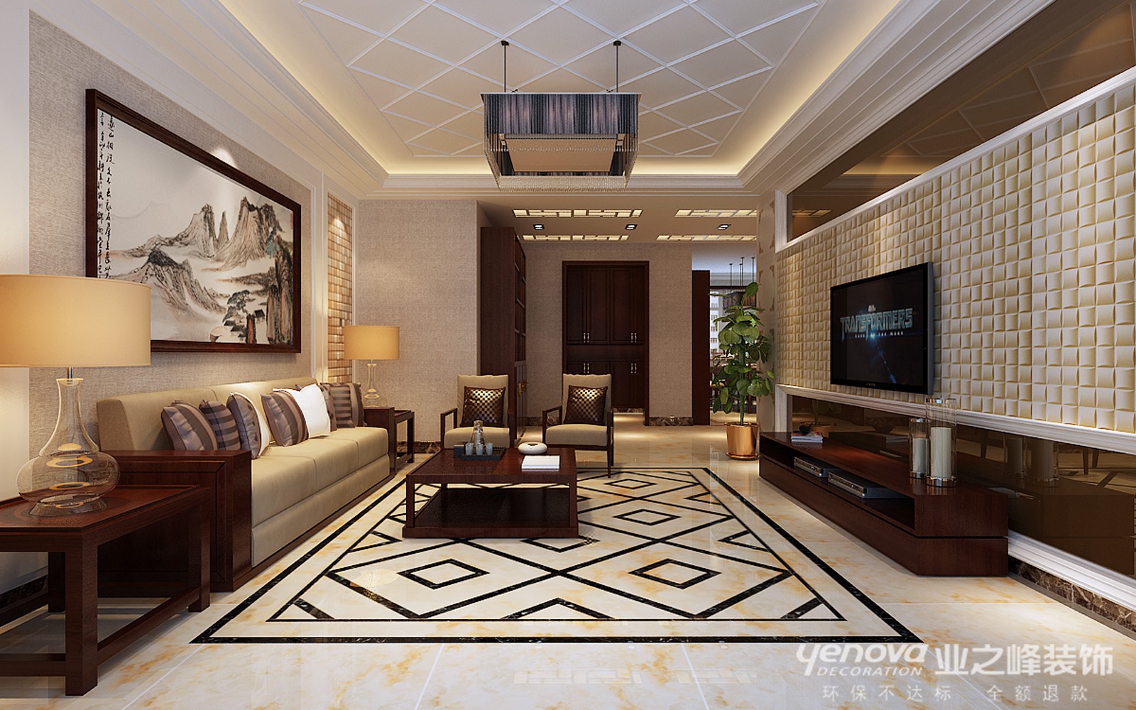 小区:东胜紫御府 面积:143㎡ 户型:三居 风格:新中式风格