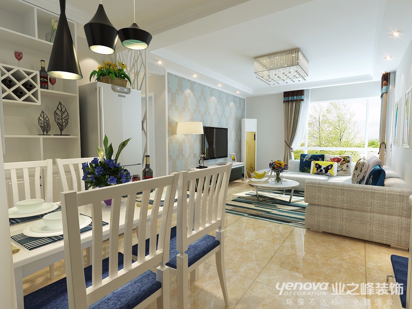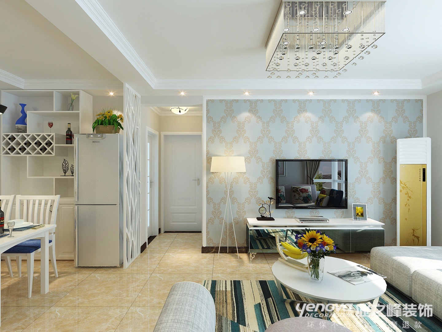 88㎡二居简欧风格廊桥四季