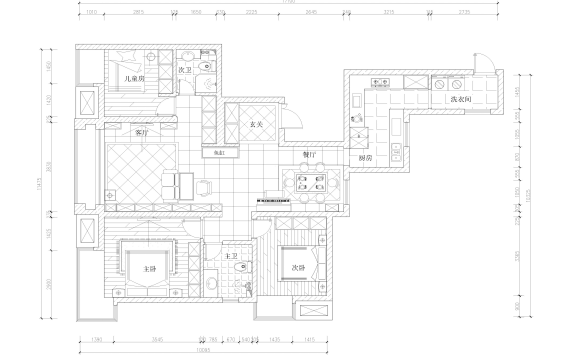 小区:尚景·新世界 面积:157㎡ 户型:三居 风格:美式风格