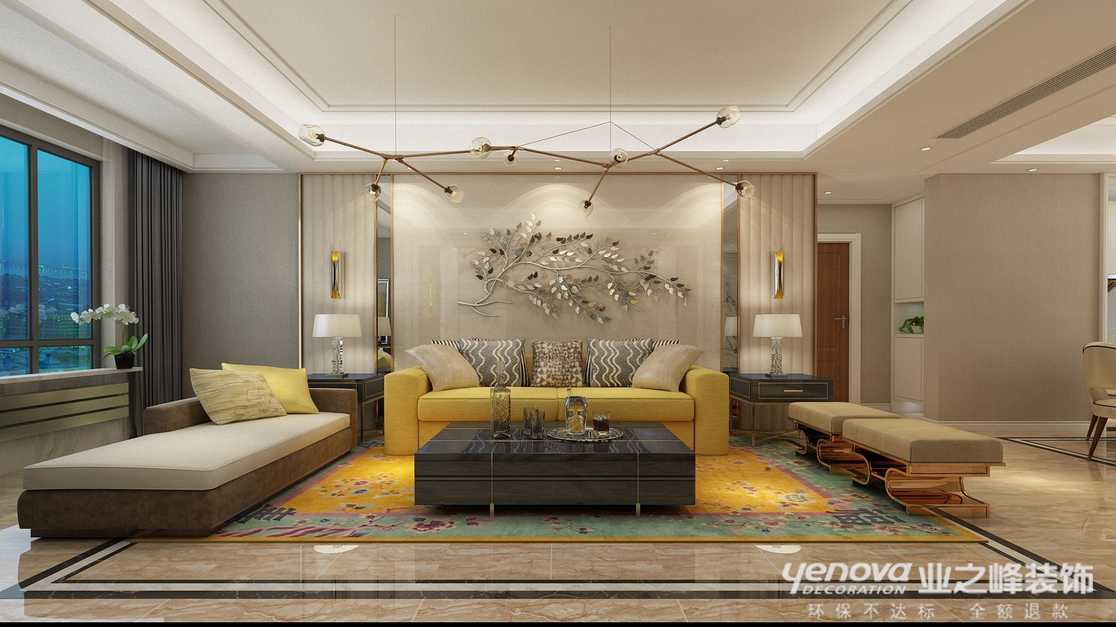 风格定义为简约现代,也有一点港式的味道。本套方案不仅注重居室的实用性,而且还体现出了现代社会生活的精致与个性,符合现代人的生活品味。家具软装用黄 白 黑 蓝色系来挑动着我们追求完美的神经。本套作品通过硬包装饰结合不锈钢材质构成的视觉线条感,将时尚融入现代简约,给人带来前卫,不受拘束的感觉。