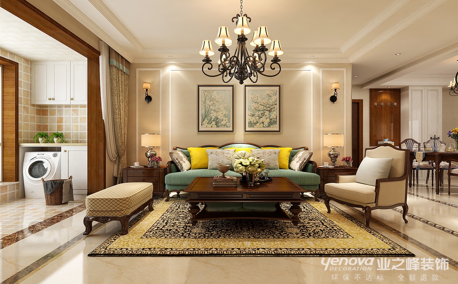 这套美式新古典设计,简约大气,体现了简洁大方、轻松的特点,居住非常具有人性化。具有注重生活细节、古典情怀,融合了多种风情于一体,采用典雅、大气的颜色搭配以及材质,营造出古典韵味的家居环境氛围。
