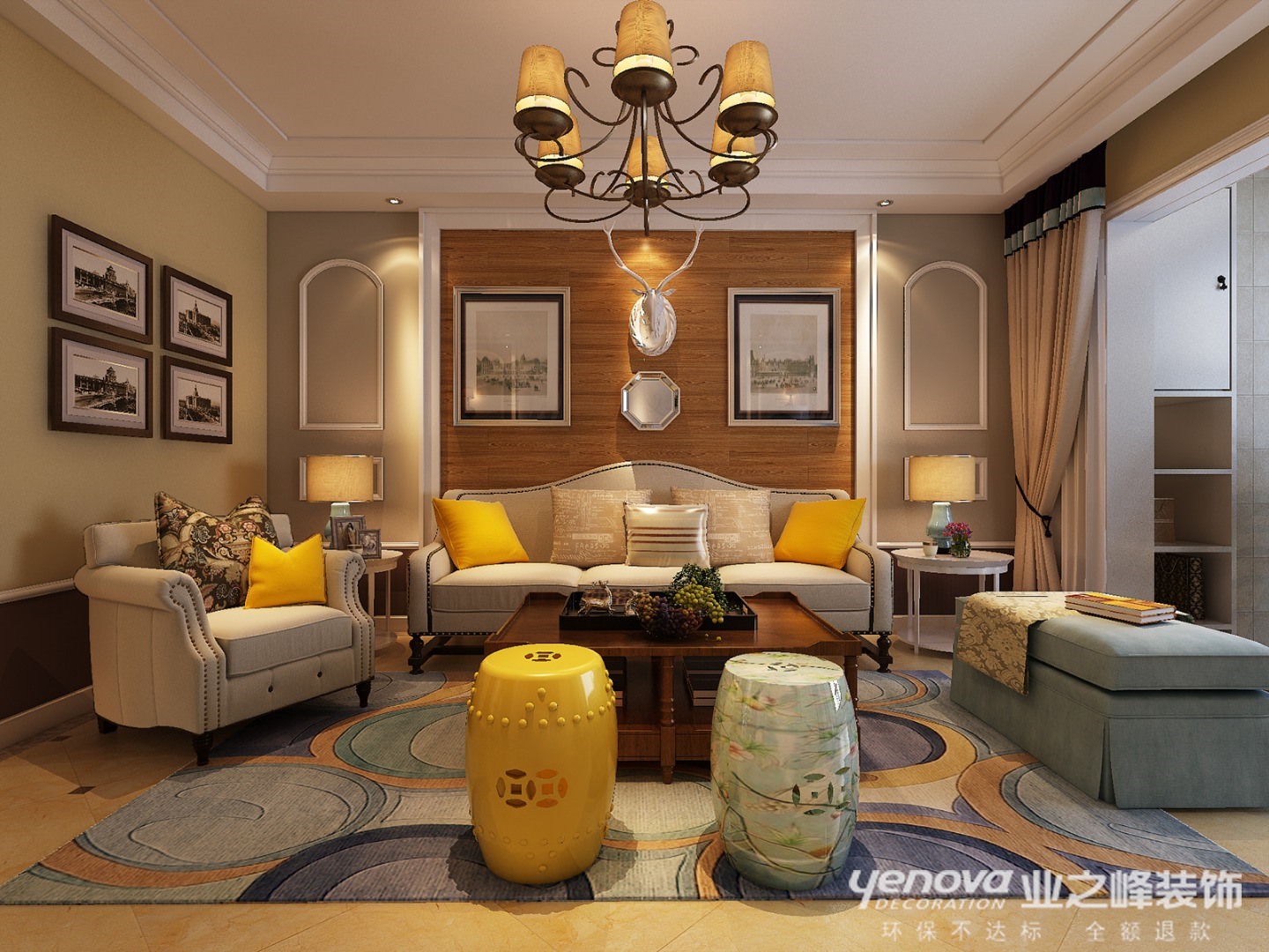 本案是简美的元素,更多的是惬意和浪漫。并不追求华丽、高雅的美式简约风格。居室色彩主调为温和色。家具为古典弯腿式,家具、门、窗漆成白色。擅用各种花饰、丰富的木线变化、富丽的窗帘帷幄是西式传统室内装饰的固定模式,空间环境多表现出华美、富丽、浪漫的气氛。不需要太多的繁琐,符合大多数年轻人的生活气息,美式的简约表达出了美国这一移民国家在各种族文化的糅合下一种新的生活品味。