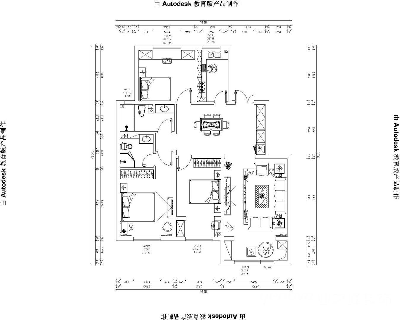 小区:紫林湾 面积:135㎡ 户型:三居 风格:美式风格