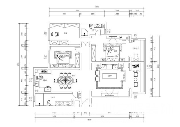 小区:维多利亚 面积:160㎡ 户型:三居 风格:简欧风格