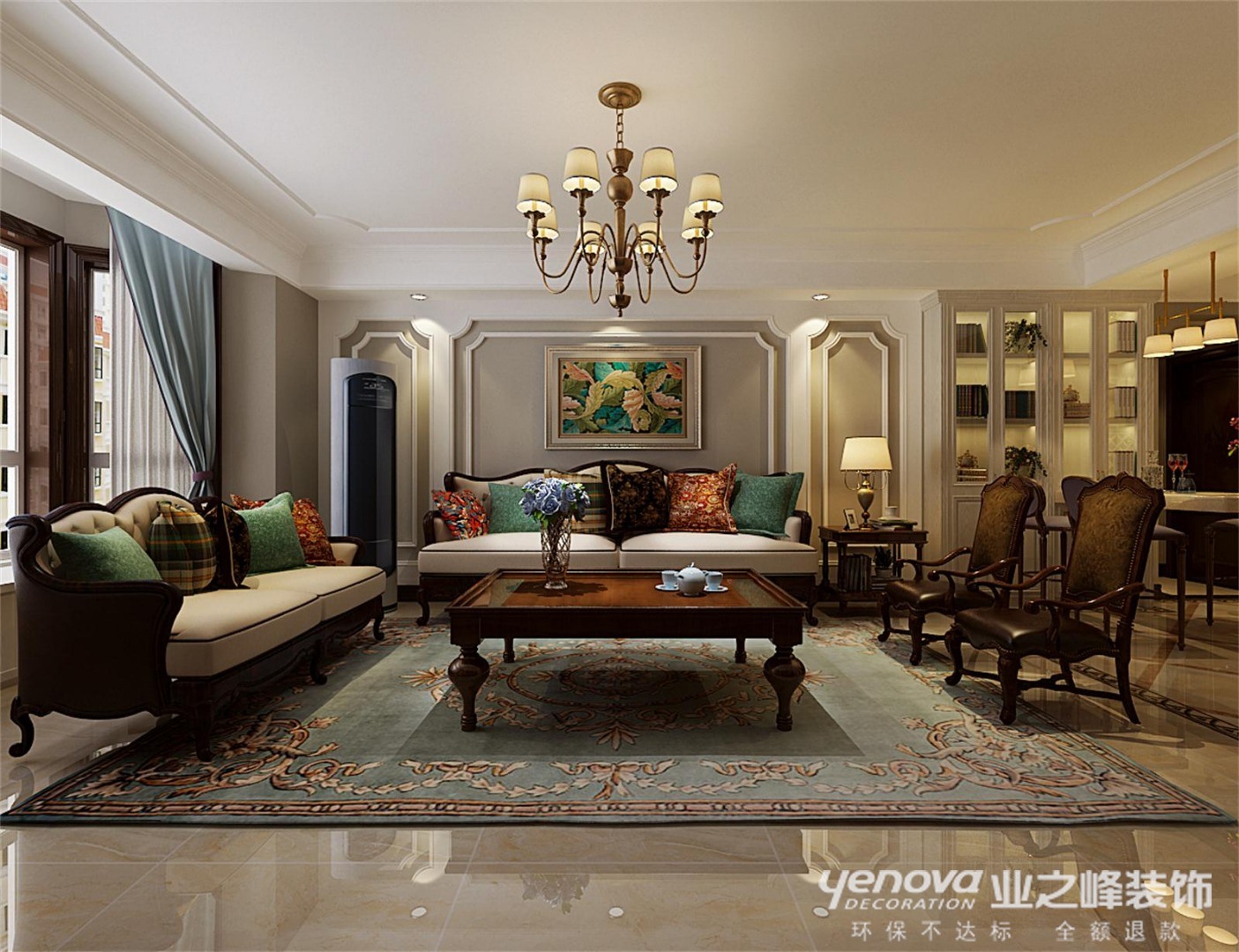 客厅的装修风格,客厅作为待客区域,一般要求简洁明快,同时装修较其它空间要更明快光鲜,通常使用大量的石材和木饰面装饰;美国人喜欢有历史感的东西,美式风格的特点受到了很多年轻人的喜爱,因此,我们不难在一些年轻的家庭看到美式风格的运用,当然,选择什么样的风格