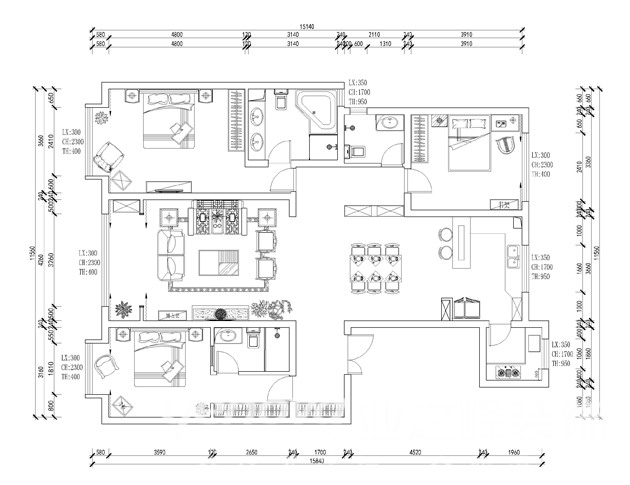 小区:东胜紫御府 面积:135㎡ 户型:三居 风格: