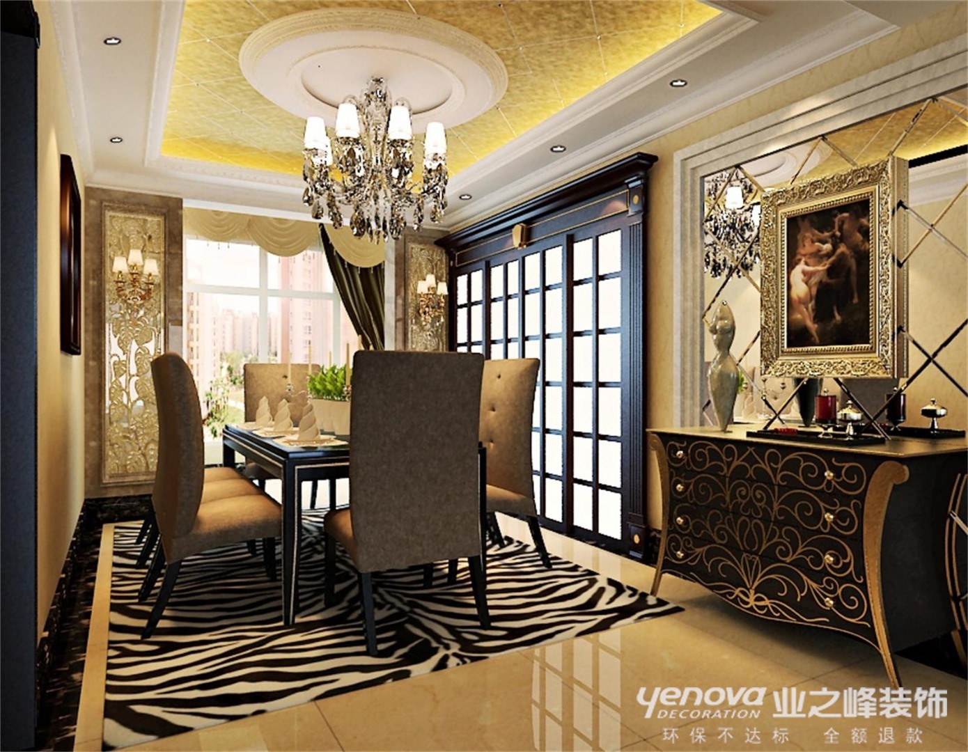 简约的欧式餐厅装修,只是采用了一些温和的色彩,就让人温馨而别致。餐厅采用了黄色和棕色的搭配,让实木家具更有古典的高贵与优雅。加上室内灯光的效果,让餐厅空间充满氛围感。