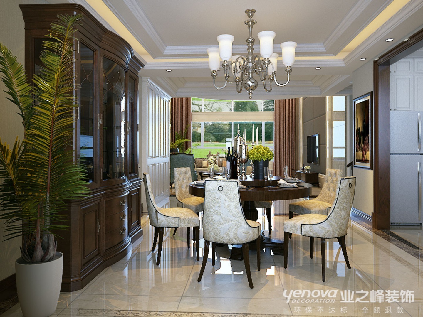 此方案的风格倾向定位为美式风格。暖色作为大地色里最温柔耐看的中性色,当你看腻了花花绿绿的醒目色彩,随性的灰褐色却散发着回归自然的朴实气息;当你厌倦了灰色空间的低调内敛,自带温度的灰褐色为都市生活打造出另一种精致与优雅。不论是墙壁色彩还是布艺面料,大面积采用木布结合的家居空间总是散发出隐隐的温度和与自然融合的惬意感。如此组合既让人感到暖暖的温度,又不会热情过度,优雅依旧。本案的设计重点是会客空间与休闲区、餐厅以及客厅空间互通与交流,从设计手法上采用了从墙面上的线与面衔接呼应,以及顶面的空间的虚拟划分。壁纸、线条与家具配饰的使用,使空间更加丰富与温馨。达到各功能空间融会贯通的目的。