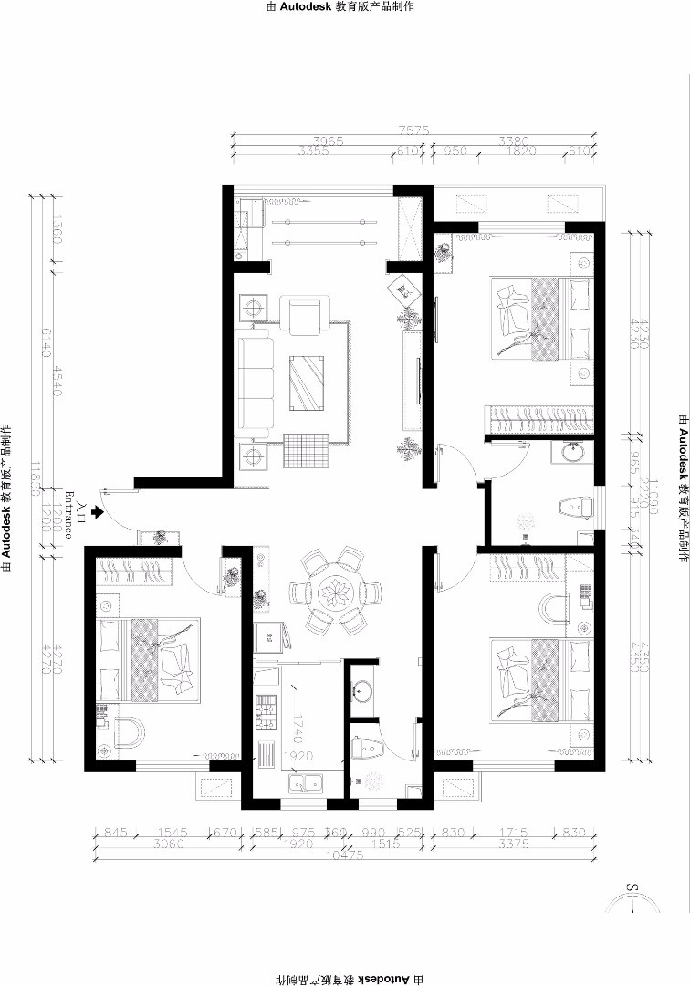 小区:天海誉天下 面积:138㎡ 户型:三居 风格:欧式风格
