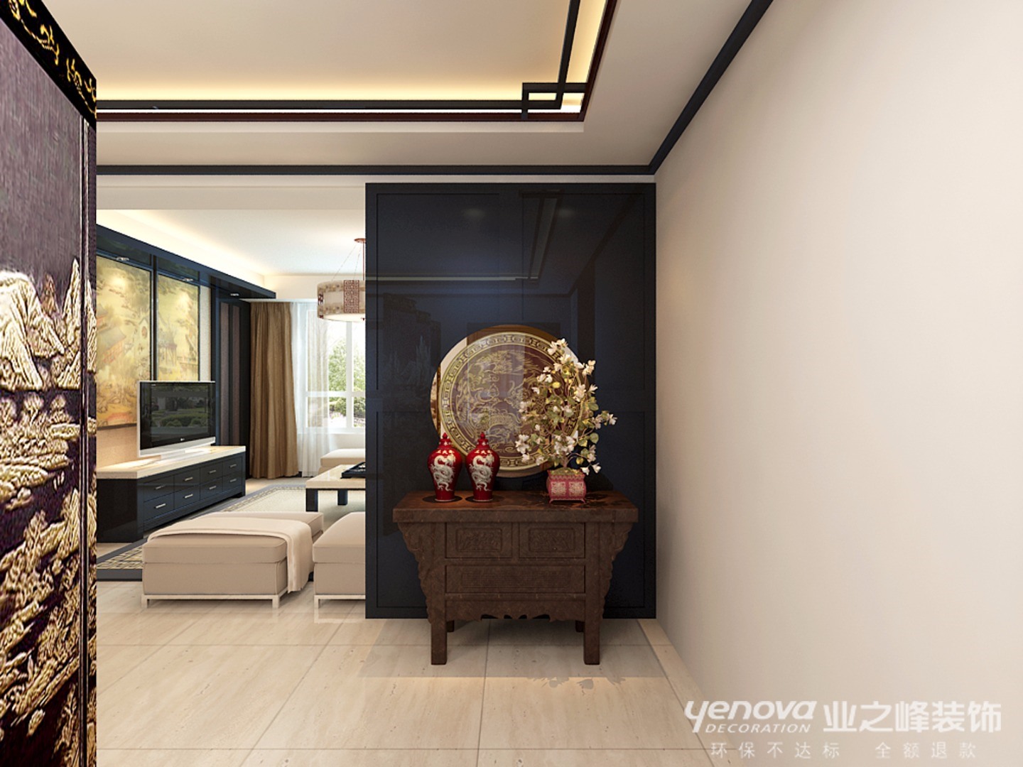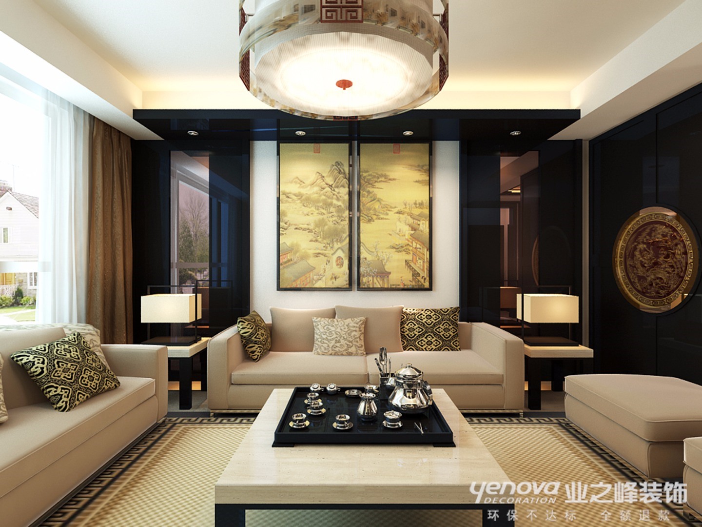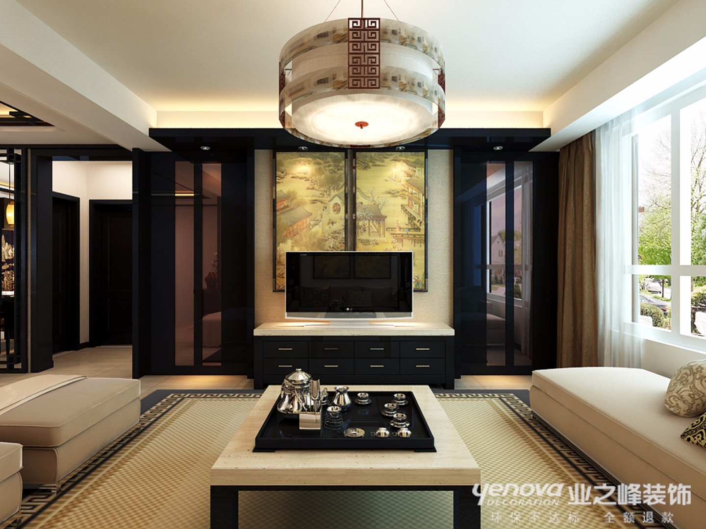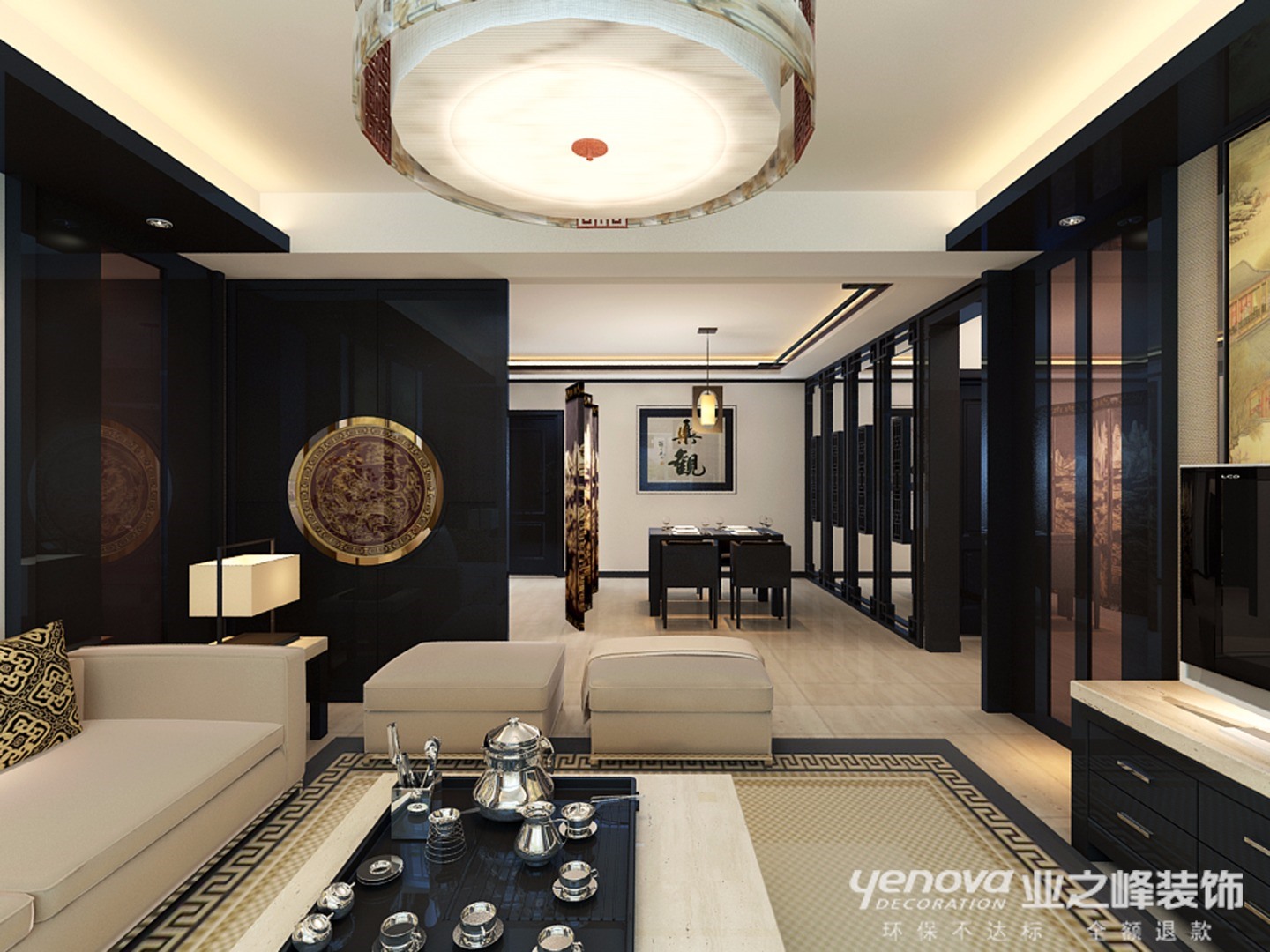 小区:建投十号院 面积:205㎡ 户型:三居 风格:新中式风格