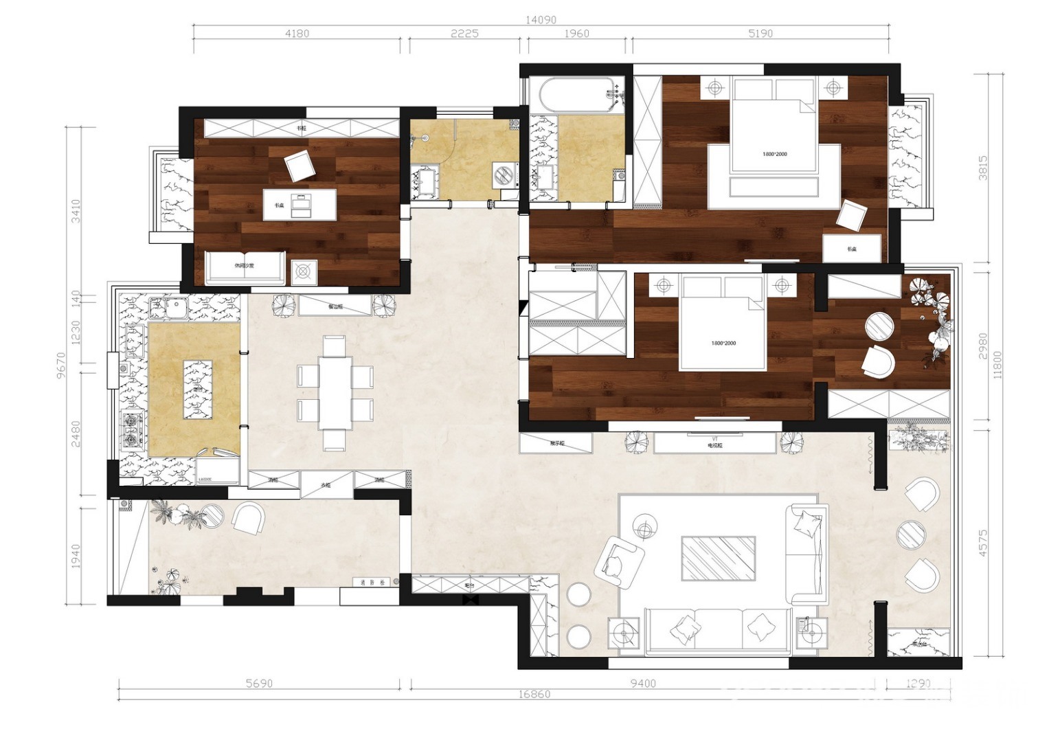 小区:九锦台小区 面积:180㎡ 户型:平层 风格:现代简约风格