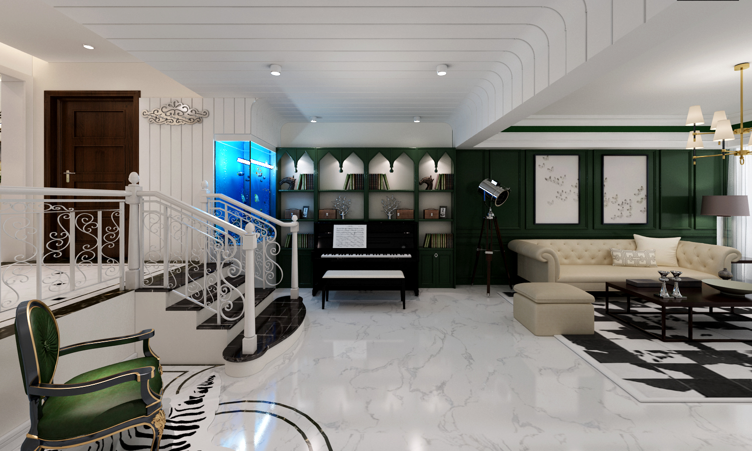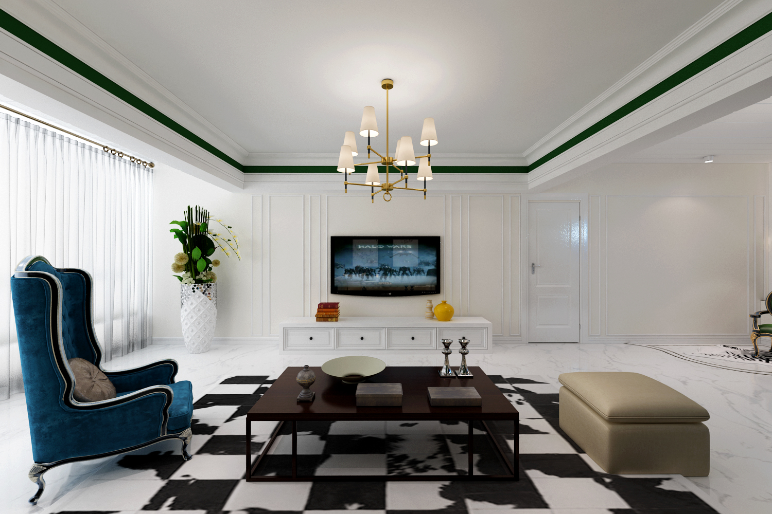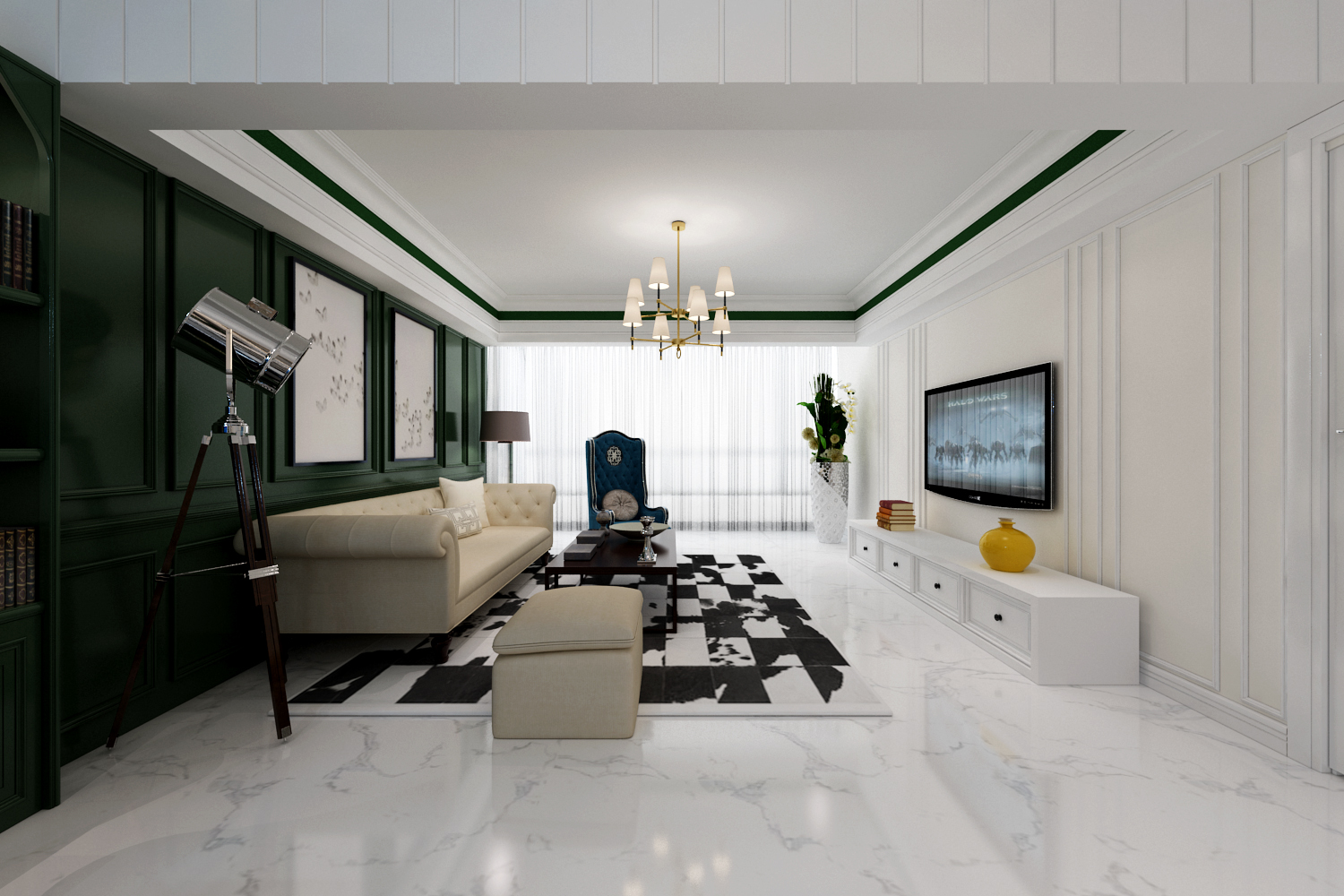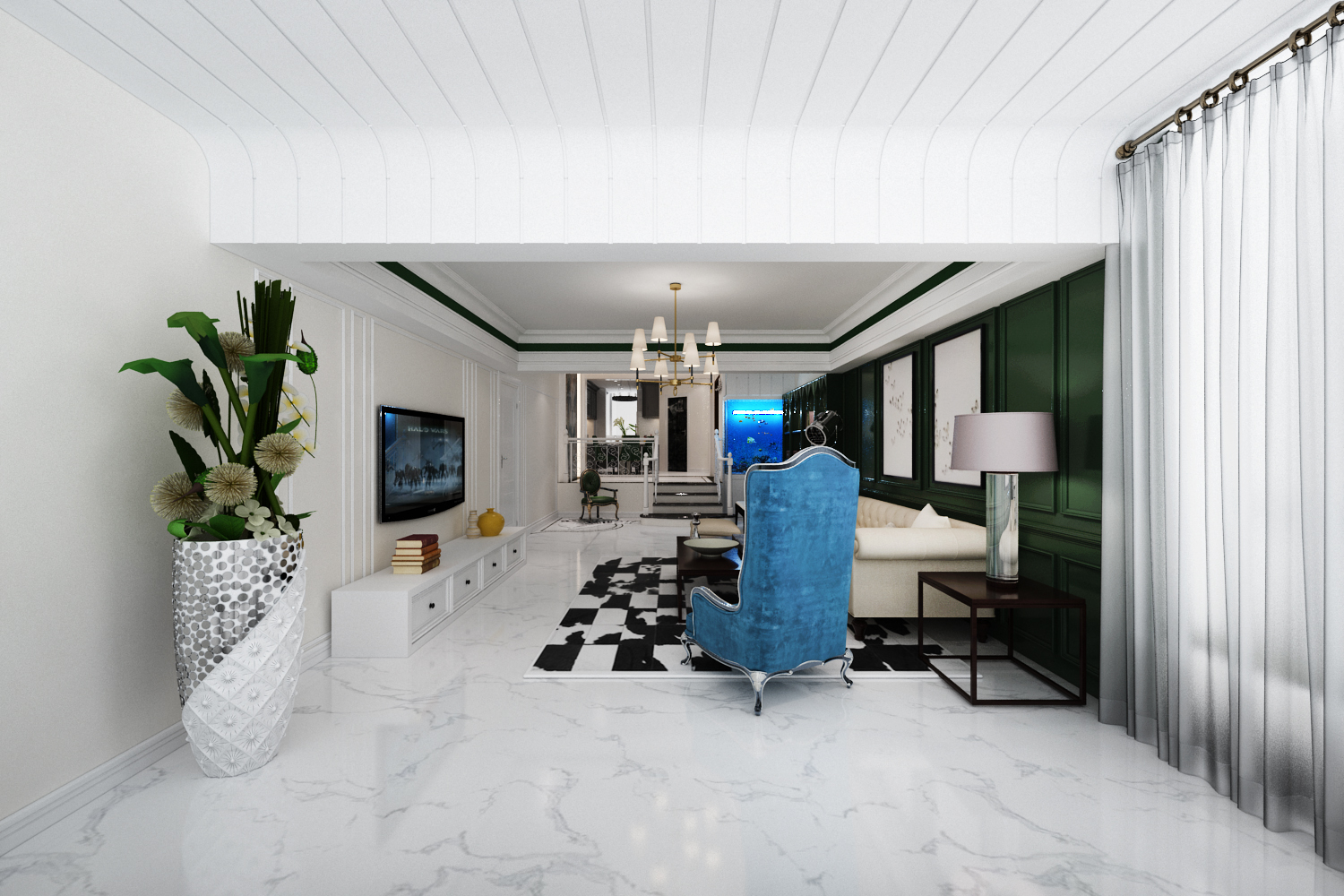 开放式空间设计给人带来宽阔的视觉感受,整体空间以黑白墨绿,白色为主色调,营造出成文大气的空间氛围,二期彰显出主人低调不凡的生活品质,墨绿色的墙板与电视墙的白色的撞色搭配,十分吸引眼球,让整体色彩空间更具有话题性和心潮气质!