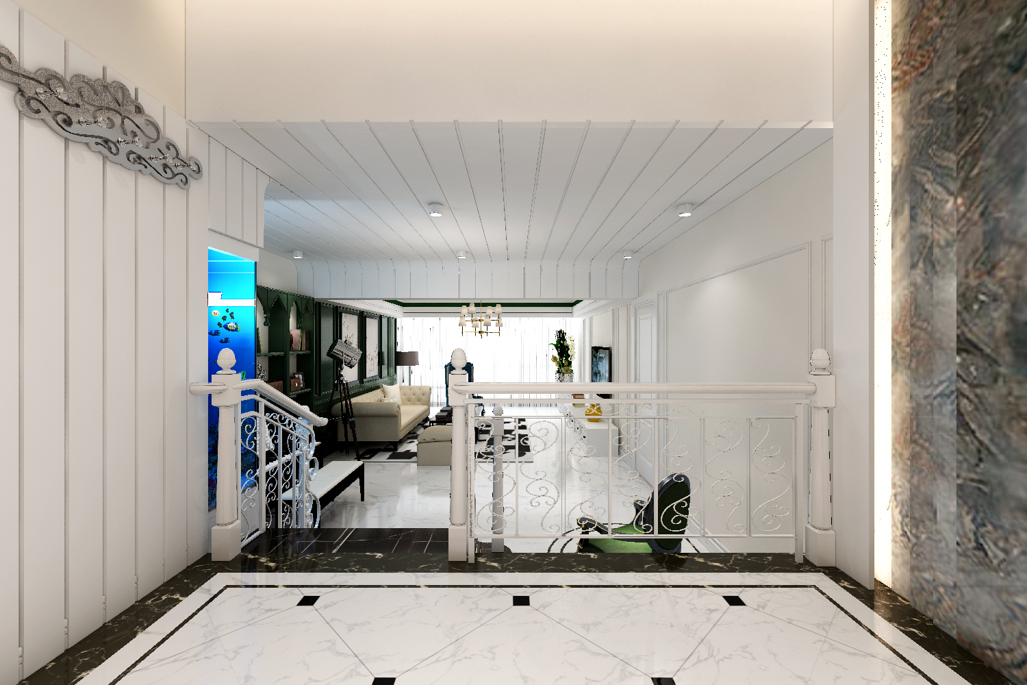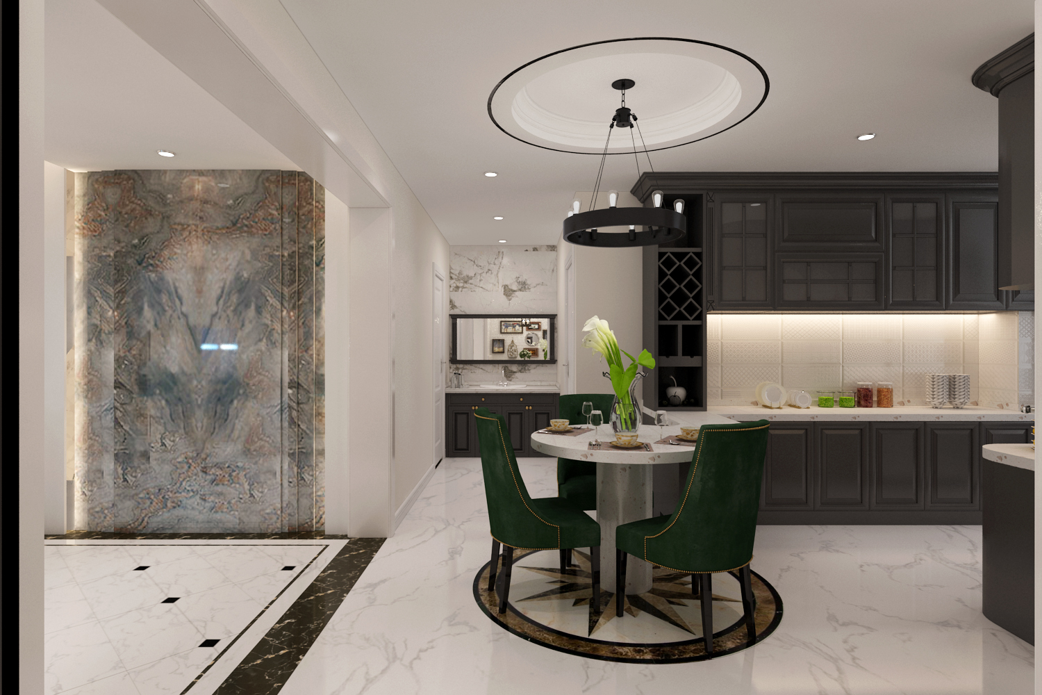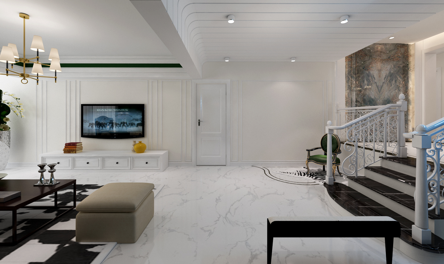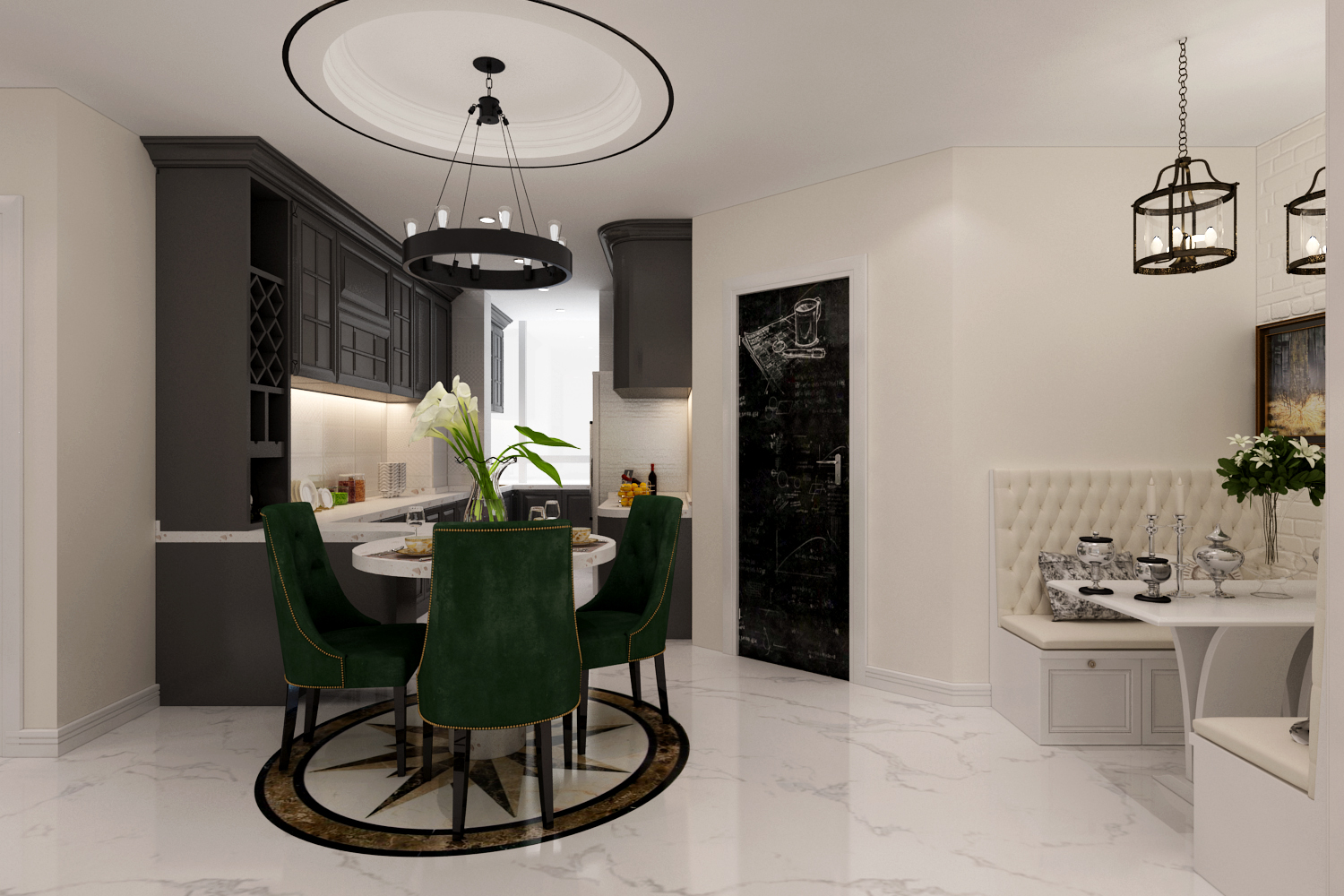 开放式空间设计给人带来宽阔的视觉感受,整体空间以黑白墨绿,白色为主色调,营造出成文大气的空间氛围,二期彰显出主人低调不凡的生活品质,墨绿色的墙板与电视墙的白色的撞色搭配,十分吸引眼球,让整体色彩空间更具有话题性和心潮气质!
