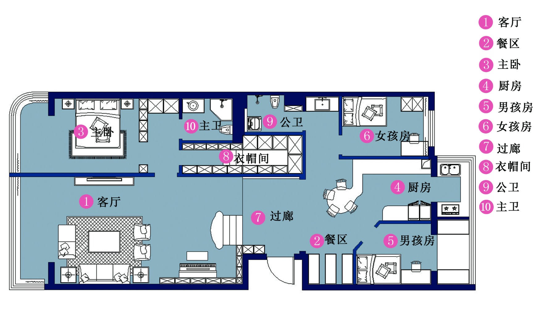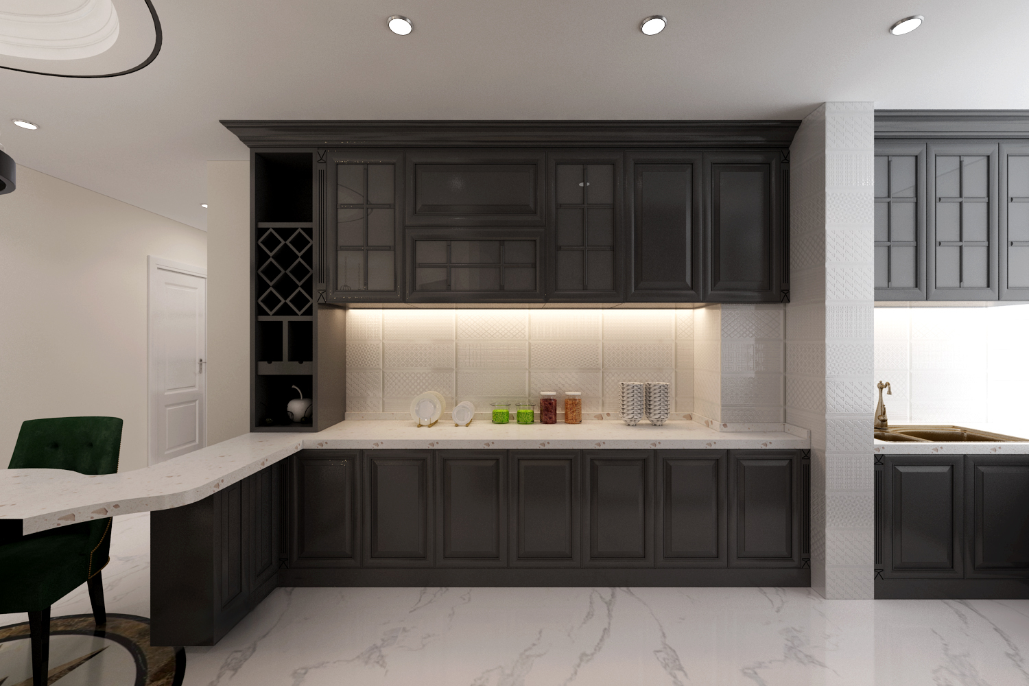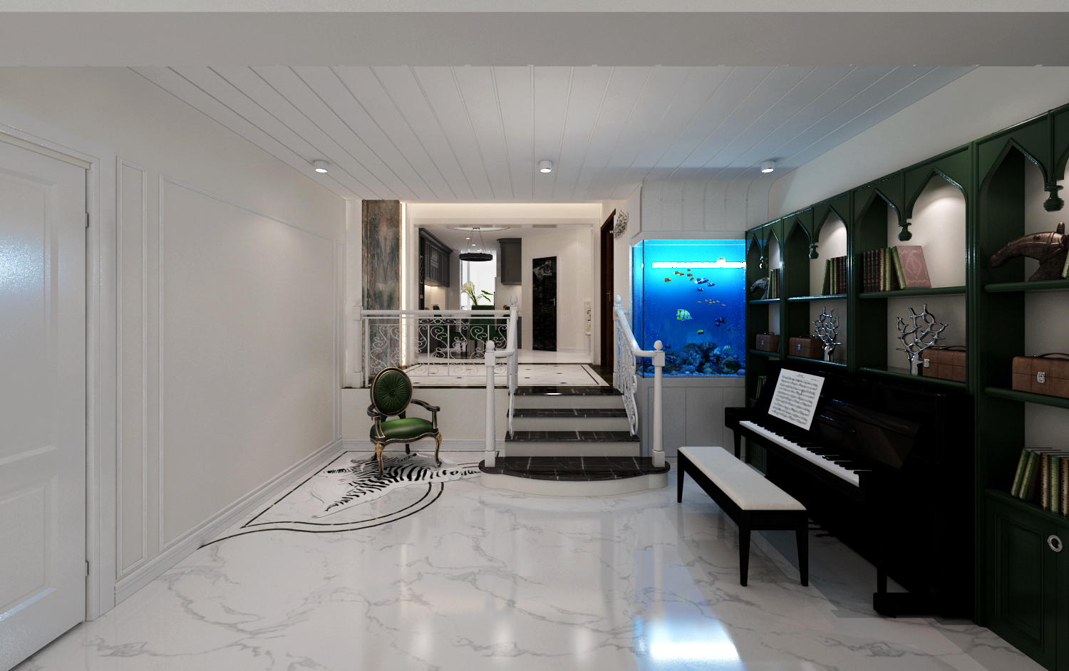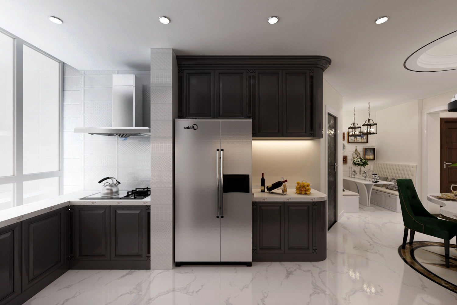 开放式空间设计给人带来宽阔的视觉感受,整体空间以黑白墨绿,白色为主色调,营造出成文大气的空间氛围,二期彰显出主人低调不凡的生活品质,墨绿色的墙板与电视墙的白色的撞色搭配,十分吸引眼球,让整体色彩空间更具有话题性和心潮气质!