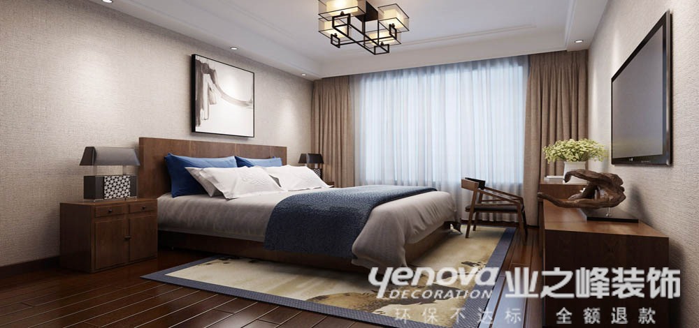 在当今快节奏的社会浪潮中,人们开始摒弃繁缛豪华的装修,力求拥有一种自然简约的居室空间。新中式风格脱离传统中式的繁琐,少了中式的沉闷,多了温馨和现代感,本案设计手法简洁,空间配色轻松自然,又能在简单的中式元素运用中体现出中国传统文化的魅力。简单的木色,精致的线条勾勒,大面积的白,沉稳大方,不奢华,又不失品味。别业居幽处,到来生隐心。南山当户牖,沣水映园林。宅内以东方艺术的写意,追求挥洒自如、一气合成和苍劲质朴的艺术造诣,再度呈现东方文化与现代手法的切合,展现具有中国式气质的哲学空间。宅内依托中庭的公众、聚、散性,向周围相邻空间渗透相互交融作用,使空间的渗透时断时续,获得步移景异的变化。唤起人文情感的交流,增强东方精神,这就是金煌装饰此案例凸显的独特。
