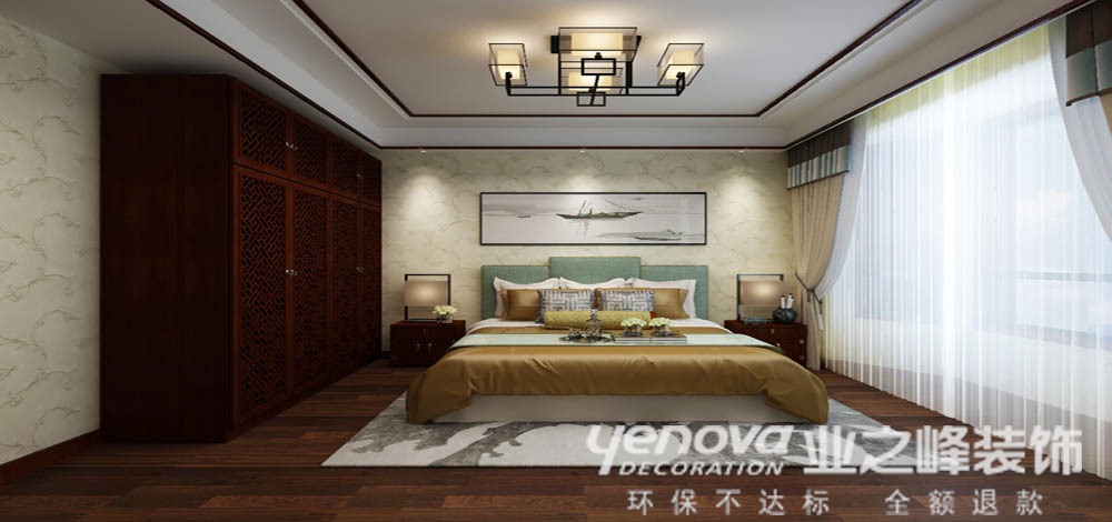 装饰造型主要采用硬朗简洁的直线条,空间具有层次感。既使得中式家具古典、质朴的内涵显现,又符合现代人追求的时尚感、实用性。