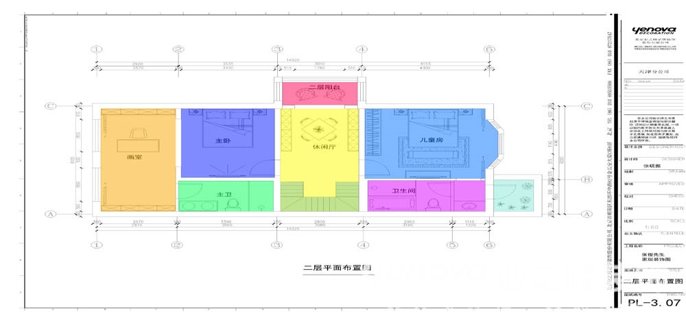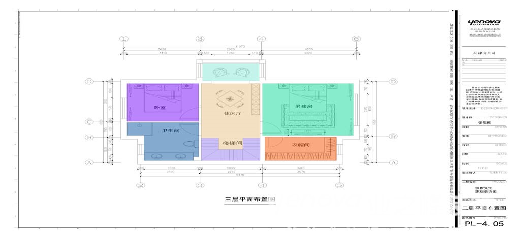 客厅为整体的点睛之笔,电视本、背景墙的隔断更为业主方便了日后的使用。搭配蓝色使得整个空间色彩更丰富,空间更有层次感。