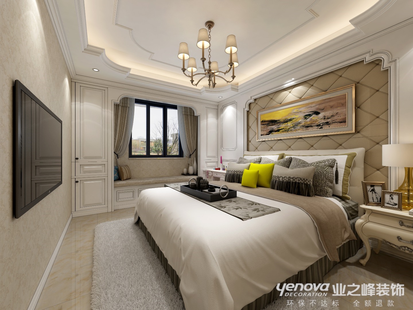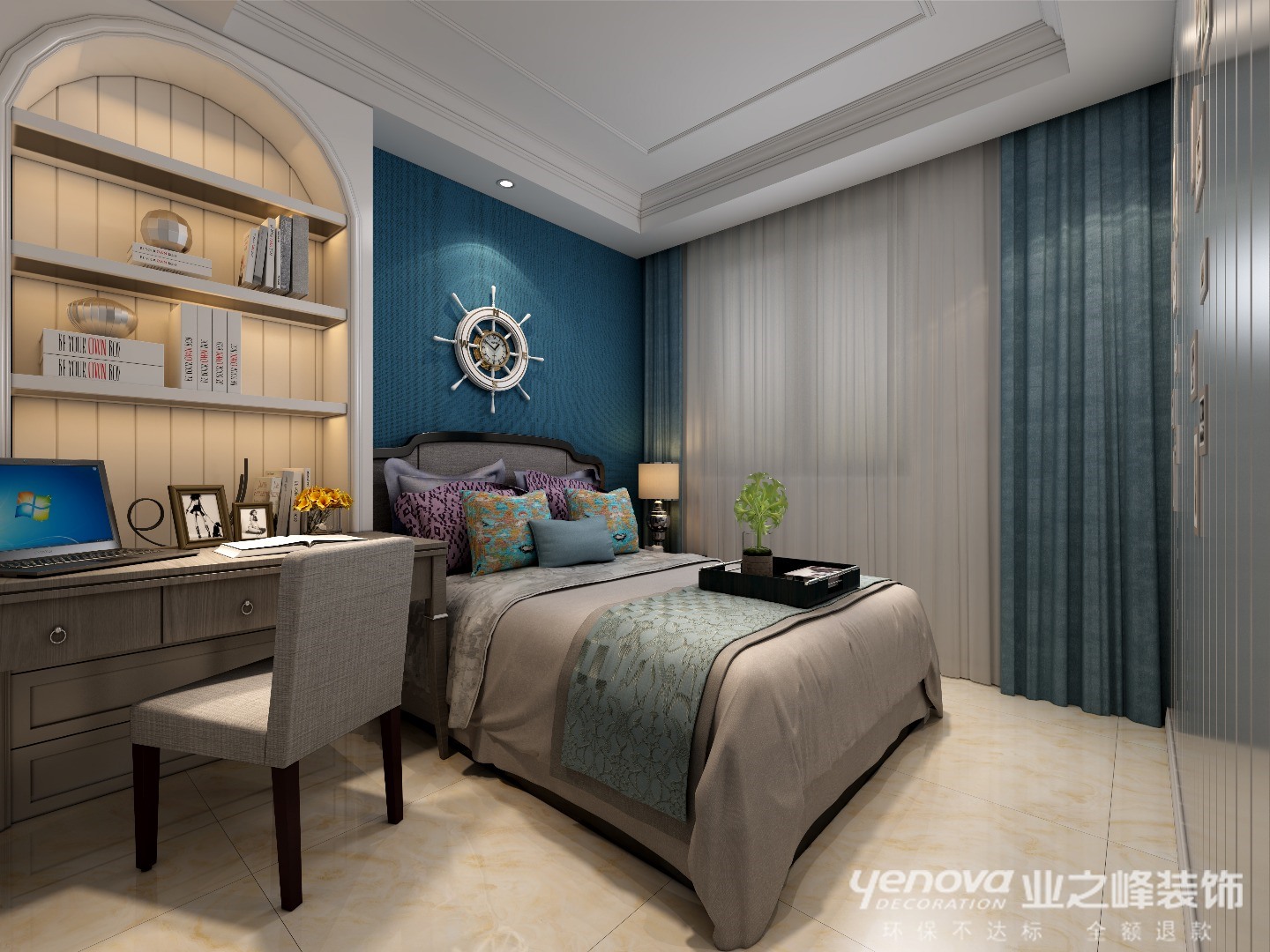此设计为一家三口设计的,因业主喜欧式家具,所以风格定为欧式风格。此方案将厨房旁的小卫生间打掉;这样既增加了采光亮度,又能增加厨房的空间。另外可以把餐厅放在这个空间,让做饭和吃饭可以在同一个区域内完成。欧式风格的特征是强调线形流动的变化,将室内雕刻工艺集中在装饰和陈设艺术上,色彩华丽且用暖色调加以协调,变形的直线与曲线相互作用以及猫脚家具与装饰工艺手段的运用,构成室内华美厚重的气氛。它在形式上以浪漫主义为基础,常用大理石、华丽多彩的织物、精美的地毯、多姿曲线的家具,让室内显示出豪华、富丽的特点,充满强烈的动感效果。如果说古典欧式风格线条复杂、色彩低沉,而简欧风格则在古典欧式风格的基础上,以简约的线条代替复杂的花纹,采用更为明快清新的颜色,既保留了古典欧式的典雅与豪华,又更适应现代生活的休闲与舒适。无论是古典欧式风格还是简欧风格,其设计哲学都是追求深沉里显露尊贵、典雅中浸透豪华的设计表现,并期望这种表现能够完整地体现出居住人追求品质、典雅生活,视生活为艺术的人生态度。 清爽干净的乳白色调,看起来非常舒适。床品采用深蓝色则带来几分沉稳的味道。