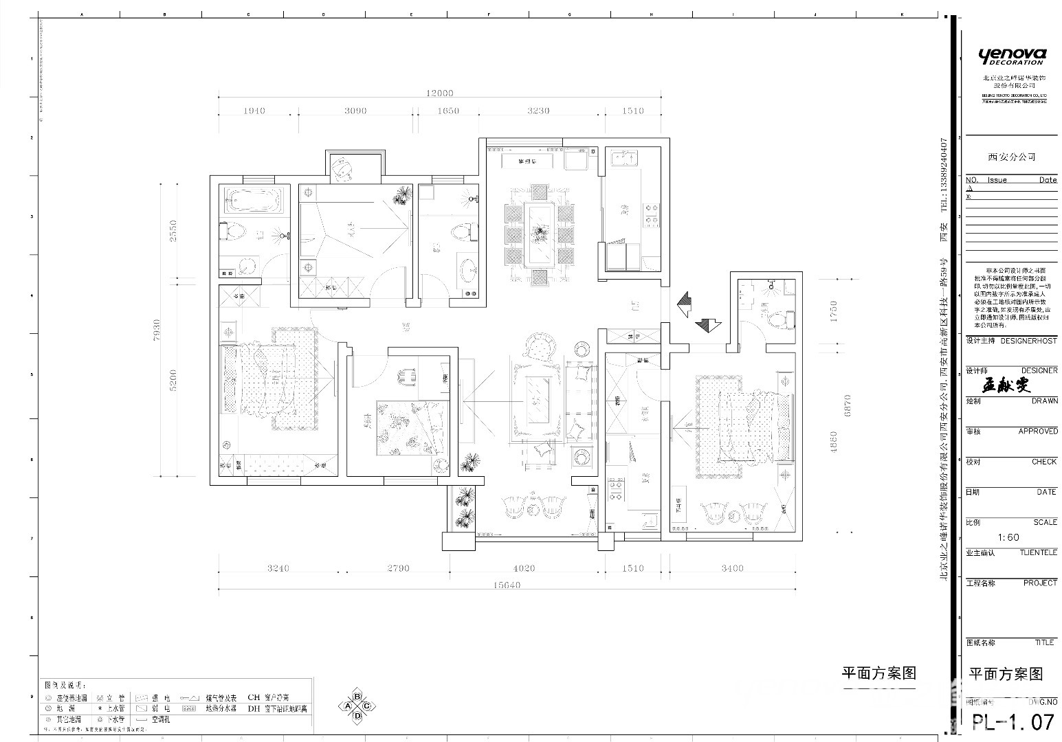小区:一曲江山 面积:120㎡ 户型:三居 风格:欧式风格