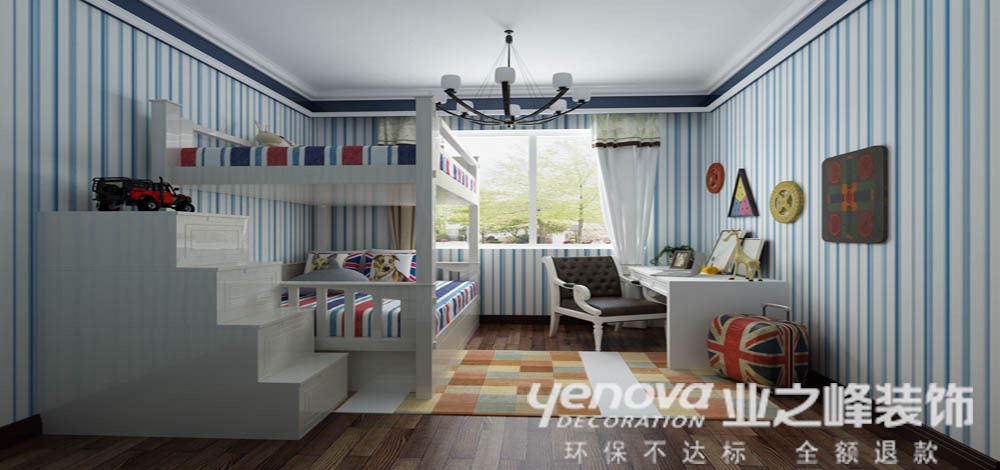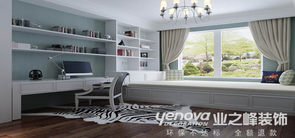 中心色为黄、橙色。选择橙色地毯,窗帘、床罩用黄白印花布。沙发、天花板用灰色调,在搭配一些绿色植物为衬托,使居室充满惬意、轻松气氛。