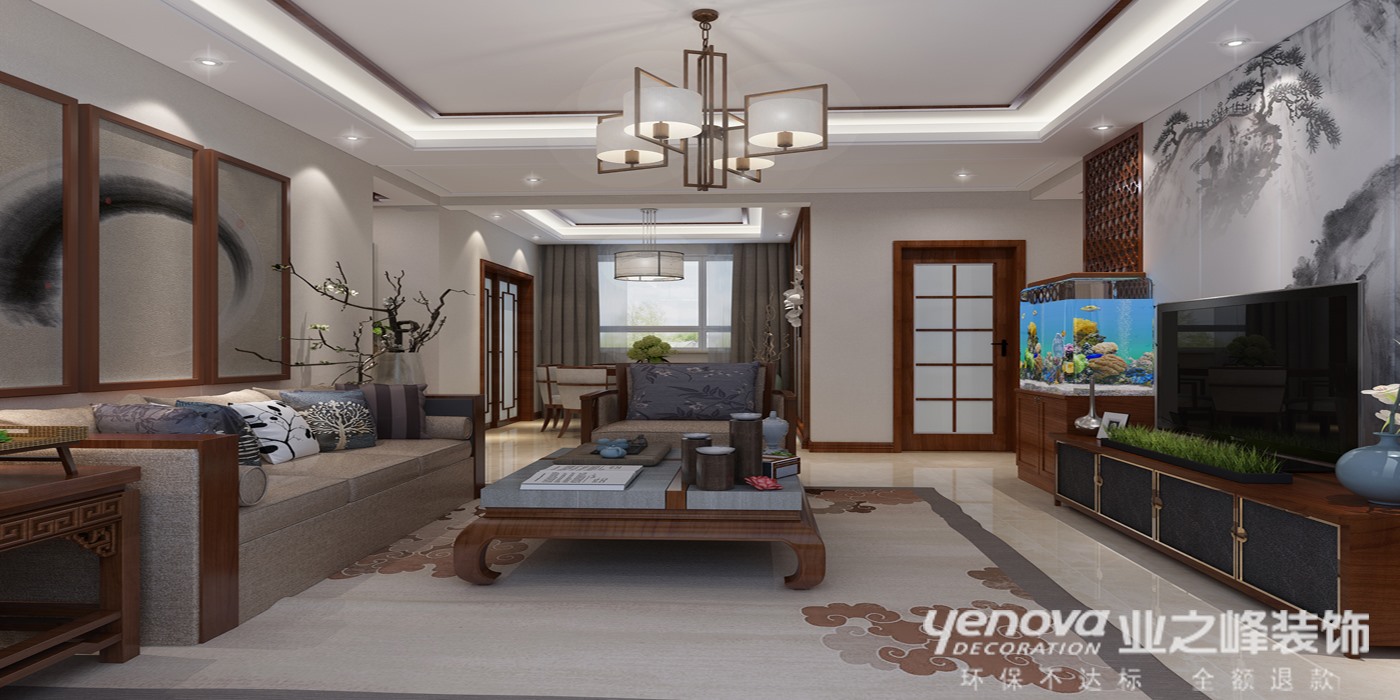 小区:融科瀚棠 面积:141㎡ 户型:三居 风格:新中式风格