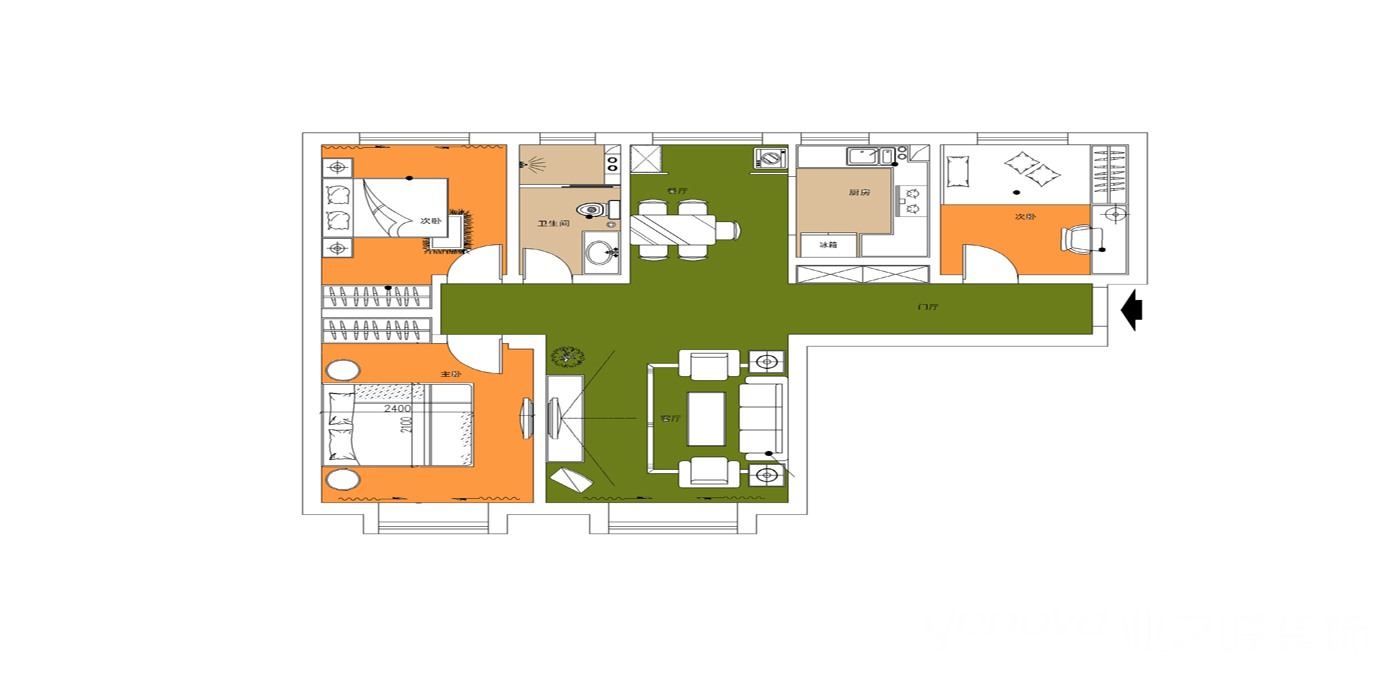 小区:融创中央学府 面积:110㎡ 户型:三居 风格:北欧风格