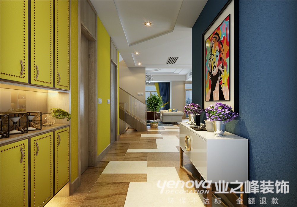 解决方案:合理利用门厅空间,仅设计了鞋柜,和挂画实现空间的最大化,减少门厅的冲景;设计新风系统解决室内新风问题。