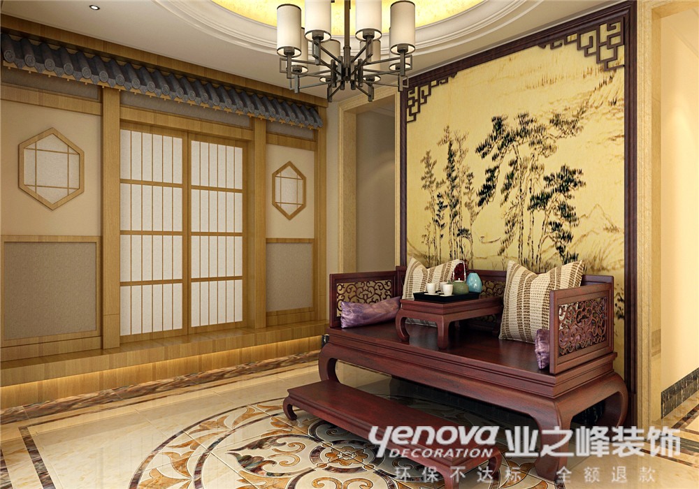 根据业主对淡雅,自然的生活追求,我们大量运用了带有浓郁苏州园林的符号语言,去繁存简。借苏州园林的设计手法,在业主的房间中进行“借景话室”。力求用于中新“余元”来诠释中式。众多的木色运用,倍具文人气质,色调文化的运用结合人文气质的符号余元,把兼备现代与传统的新中式发挥的淋漓尽致。在空间设计中,门厅的设计,使之融入客厅,秉承苏州园林设计中空间通透原则,两者互相“借景”交流互通。移步换景,共享空间。用花格窗做隔断,漏而