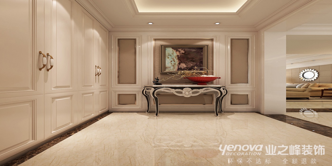后期软装方面,选用的配搭灯具、家具等也很考究,既有西式元素,又具有强烈的时代感元素。例如天花水晶灯的闪烁效果,配搭上欧式家具、水晶灯、车边镜、挂画、饰品等完美组合,形成极具品位的装饰效果,将奢华的欧式风情演绎得淋漓尽致。