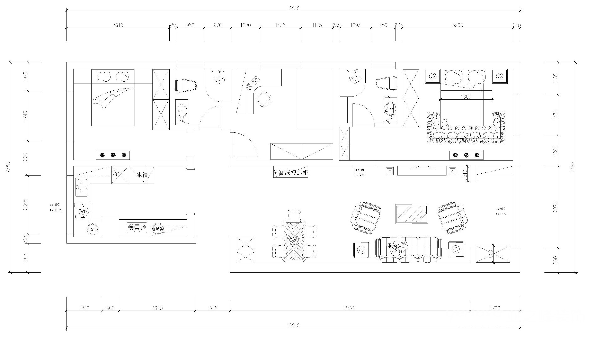 130㎡三居现代简约风格粼居湖
