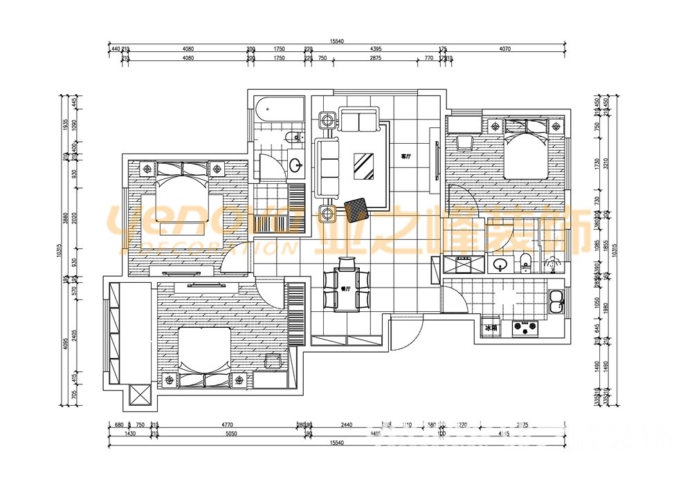 小区:时代城 面积:168㎡ 户型:三居 风格:简欧风格