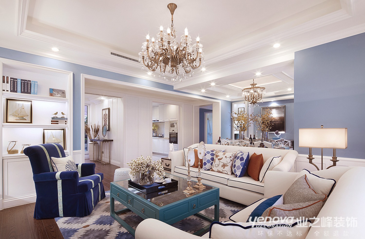 本案以美式风格为主导溶于现代简约元素,追求低调、高雅的高品位生活。原空间结构就就把功能区域清晰划分,再结合设计手法巧妙的吊顶。空间环境多表现出华美、富丽、浪漫的气氛。