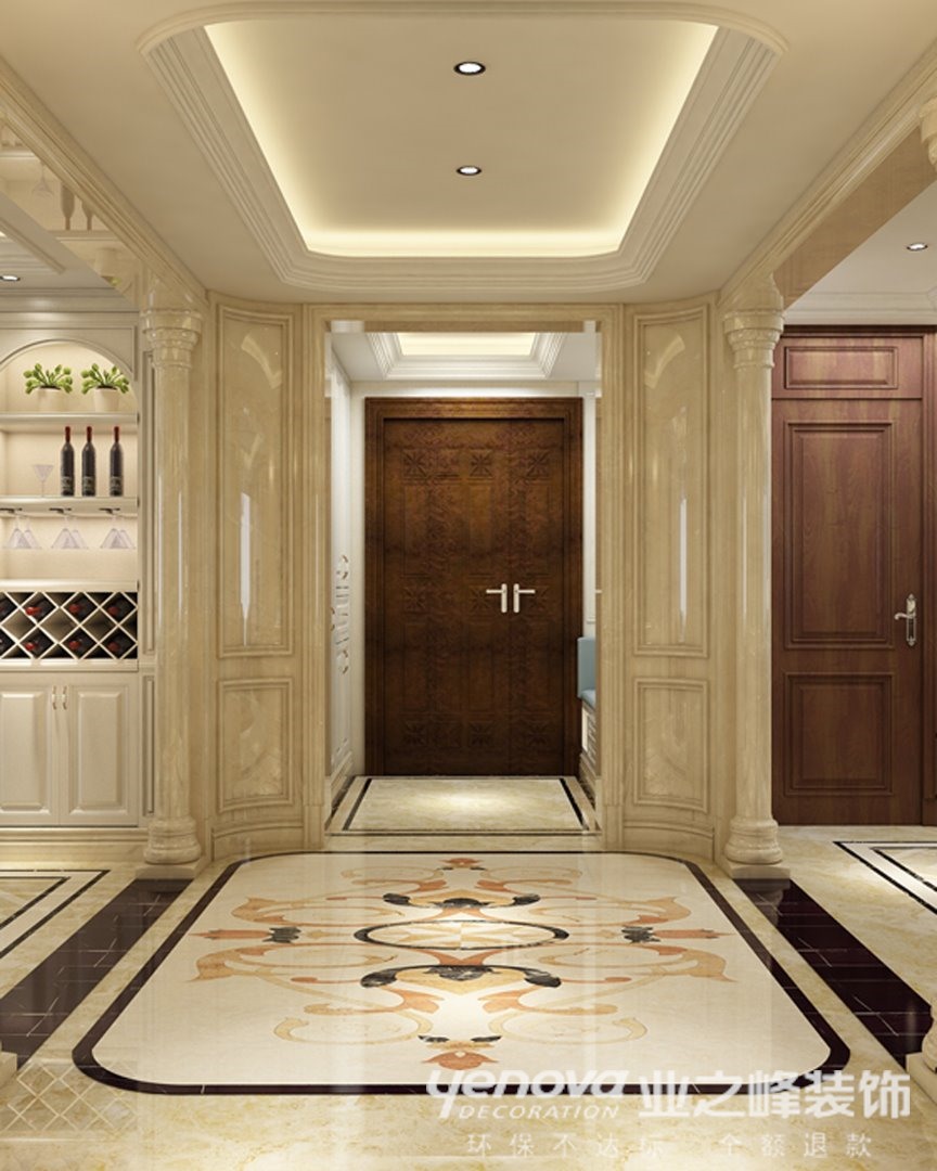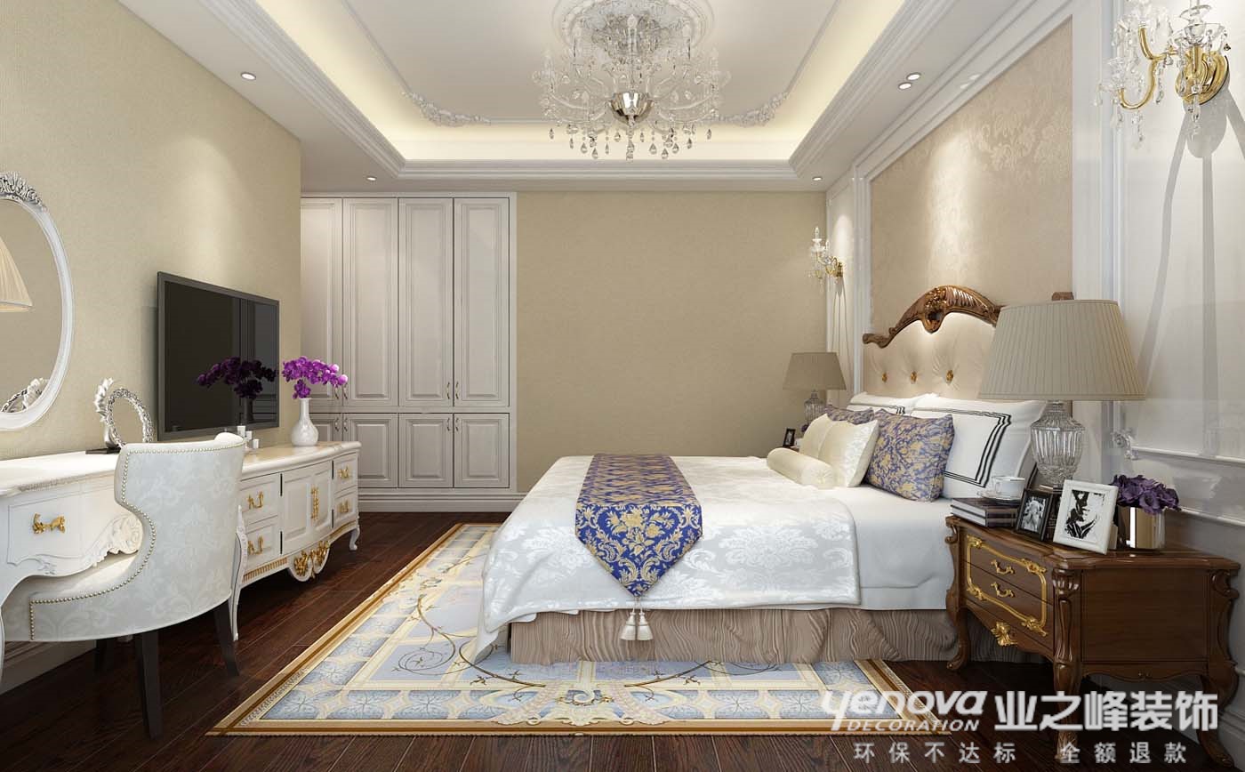 计中,本案力求营造出一种使空间尽情挥洒源远流长的神韵,在给予空间生命力的同时也饱含文化情趣。房间选用线条简洁,墙面用高档壁纸,或优质乳胶漆,以烘托豪华效果,且用通墙的柜子做收纳,让整个空间显得干净不凌乱。