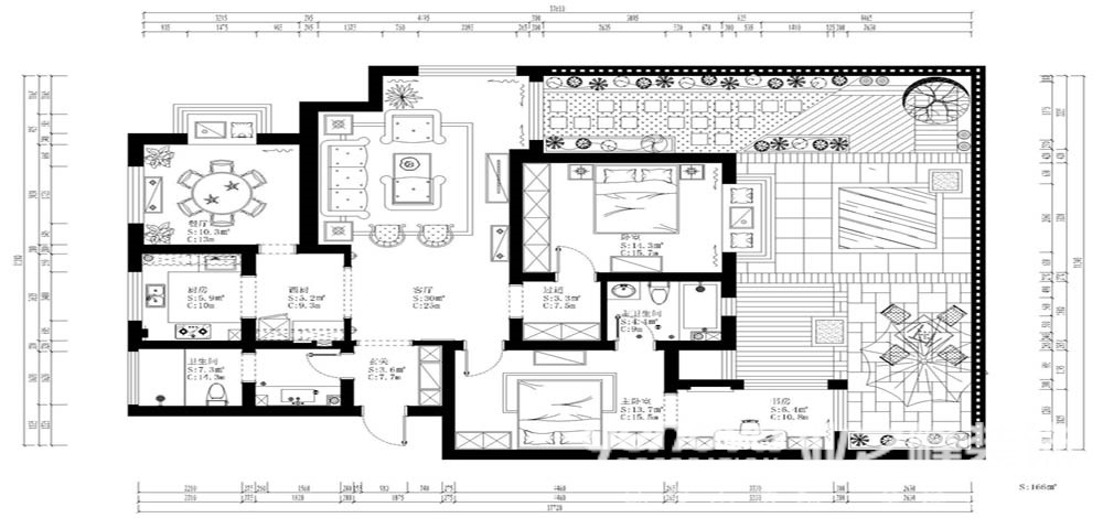 小区:人和院 面积:150㎡ 户型:三居 风格:
