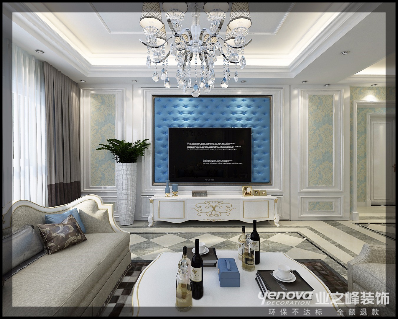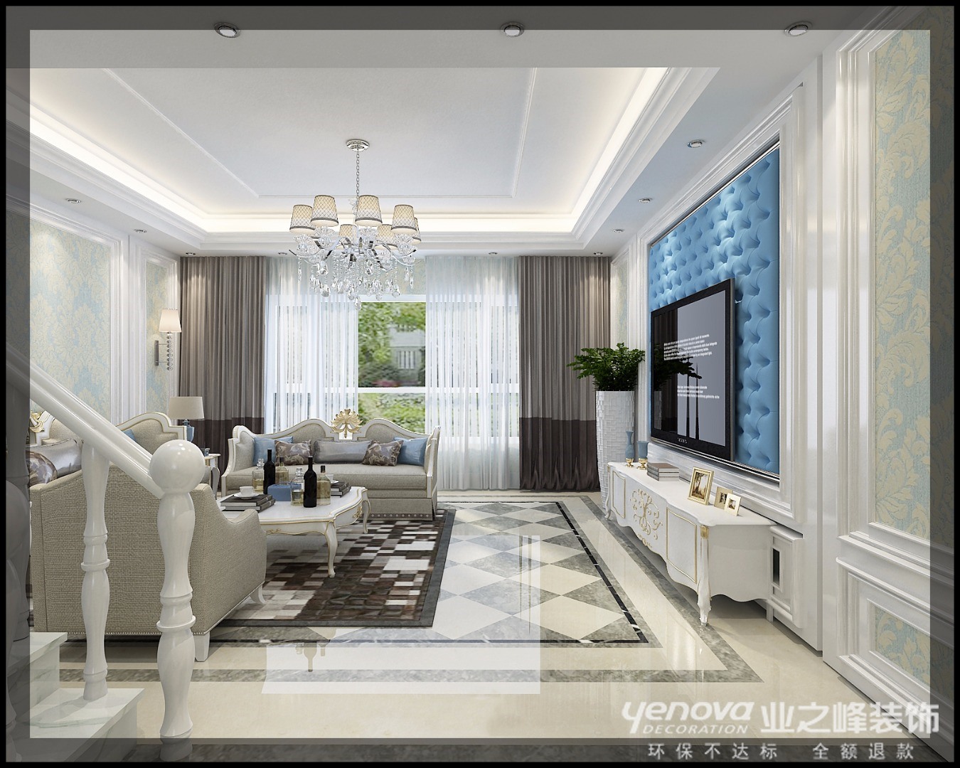 客厅作为待客区域,一般要求简洁明快,同时装修较其它空间要更明快光鲜,客厅主人使用大量的石材和木饰面装饰,米色呼应着蓝色,如一股清流,沉稳大方。受西方文化的影响,简美装修风格得到了很多业主的喜爱,也是近年来较为追捧的现代主义建筑和室内的主流户型图