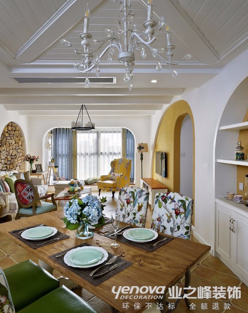 美式 田园风格装修得家居意在享受随意浪漫生活,复古和典雅让这种风格的感觉清新而舒适,搭配上家具,清新之感油然而生,如诗如图。图中餐桌椅子,为美式风格的居室增添了一分春意盎然。