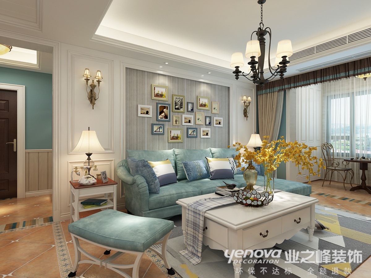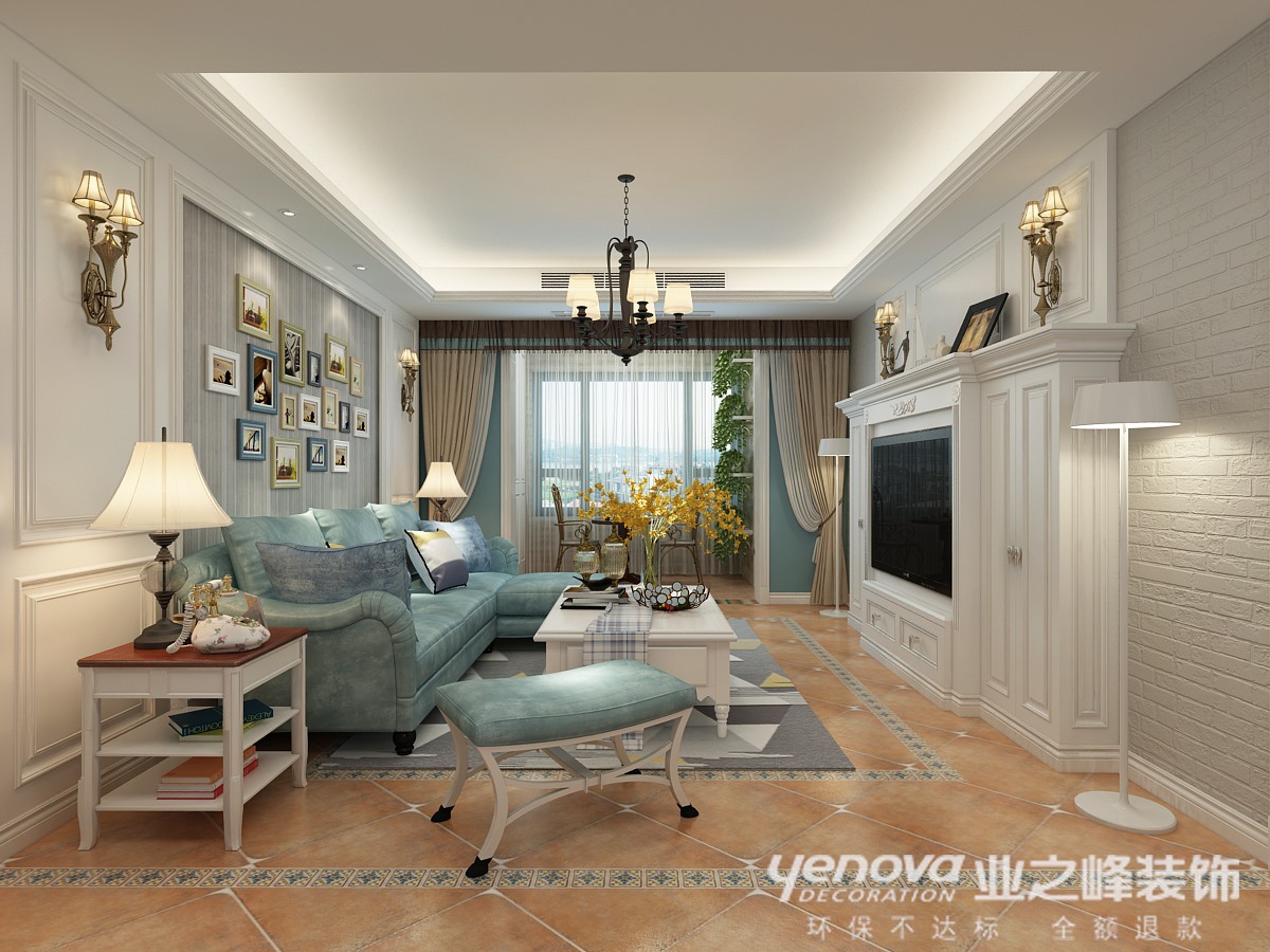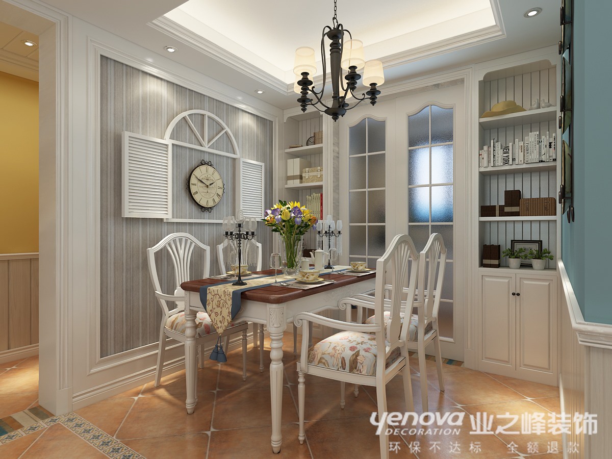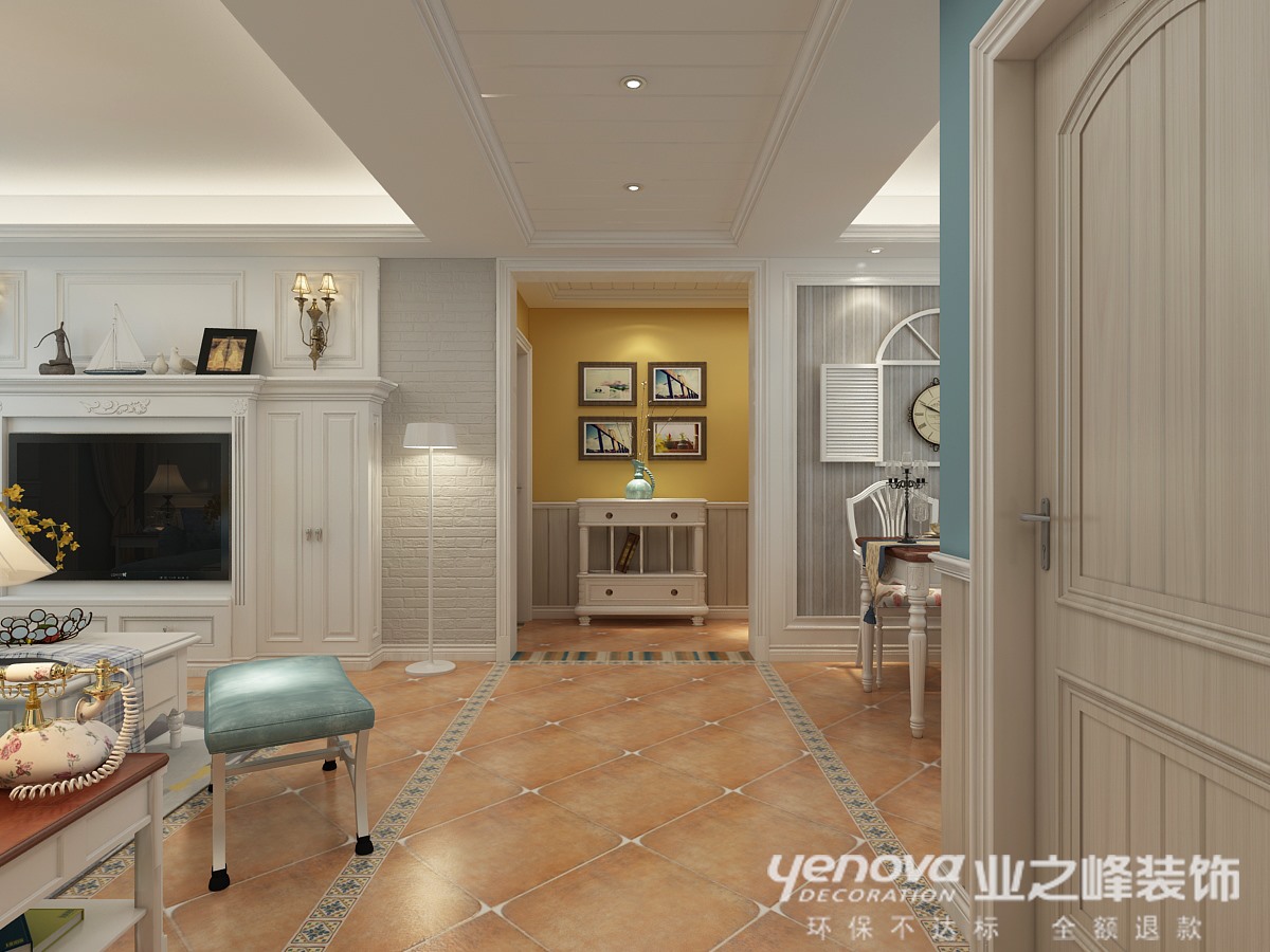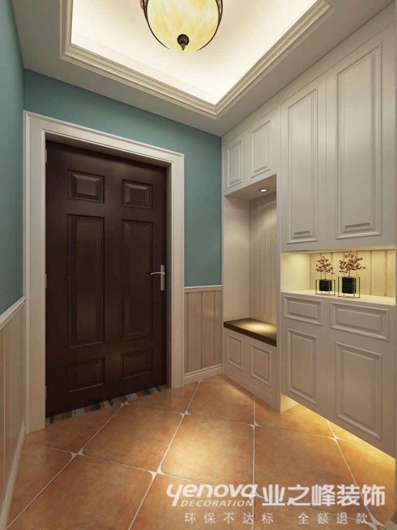 雅居乐的原始空间比较开阔、大气、利用层高的优势首先进入的是前厅空间,利用层高的优势设计了一个美式高柜,既满足居家的结合实用性及结合了空间让前厅更为扎实,形式感更强,美式换鞋凳的放置使得业主进门之前便能解决更衣,换鞋所有的功能要求。